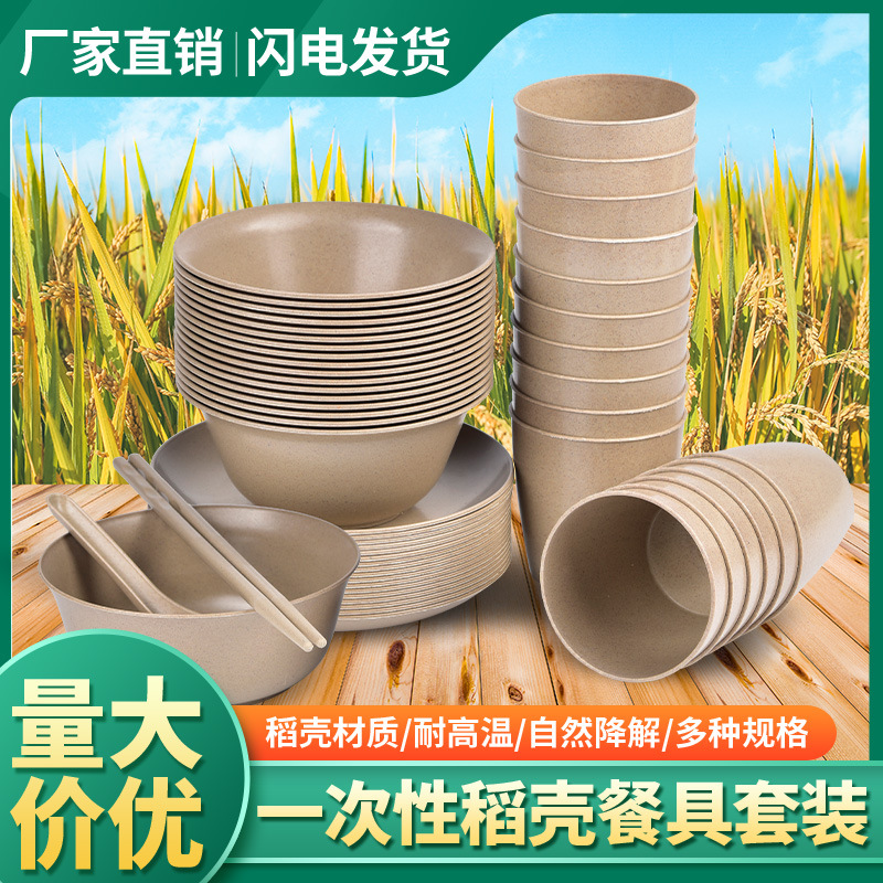 Главная страница > Биоразлагаемая посуда из рисовой шелухи, одноразовые тарелки и палочки для еды, набор из трех или четырех предметов, элитный пикник, свадебный банкет, дом