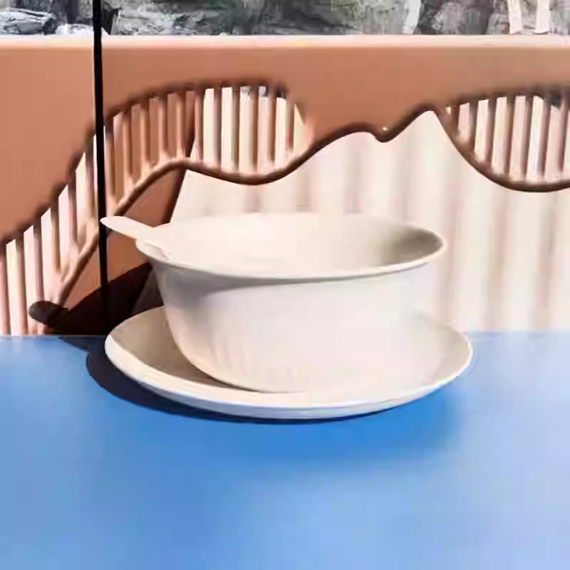 Миска 360 мл + тарелка + ложка [50 комплектов] утолщенная [оптом]