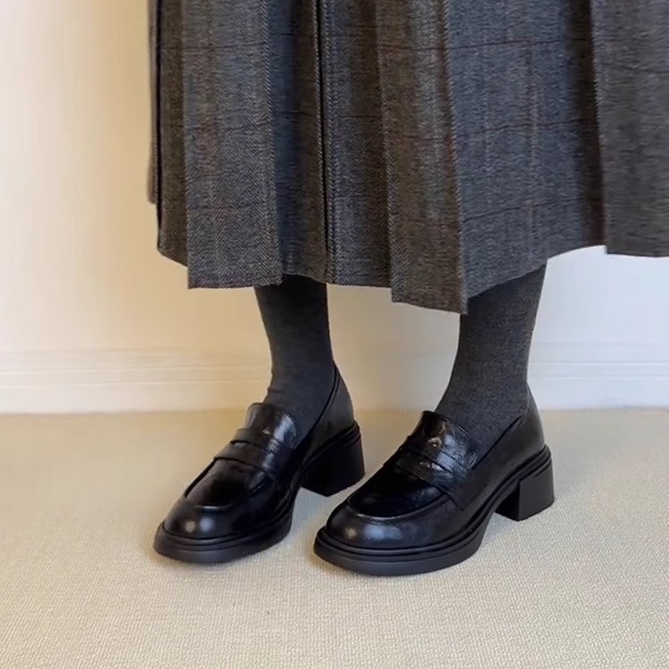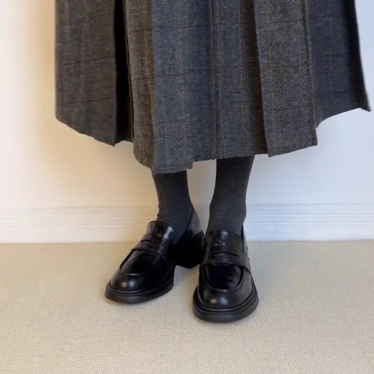 Главная страница > Овчинная версия ~ Новые туфли ретро на толстом каблуке Lefu женские туфли с круглой головой