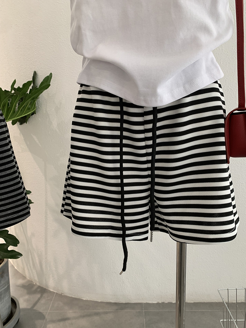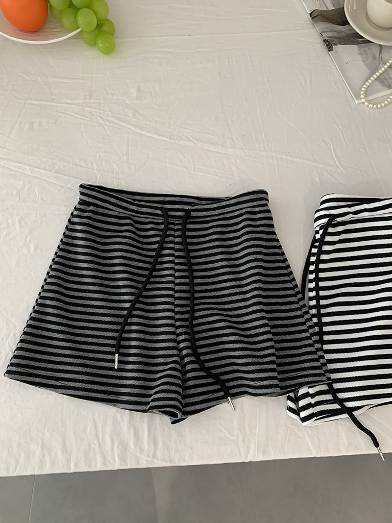 Главная страница > Omalai контрастные цветные полосатые повседневные шорты на шнурке, женские летние брюки с высокой талией, прямые брюки трапециевидной формы, шорты 3905