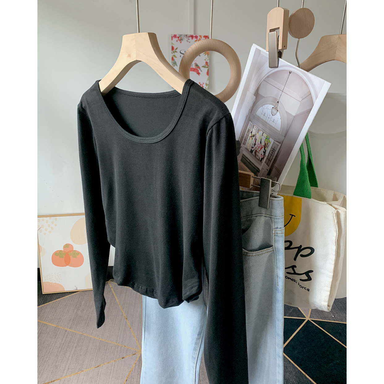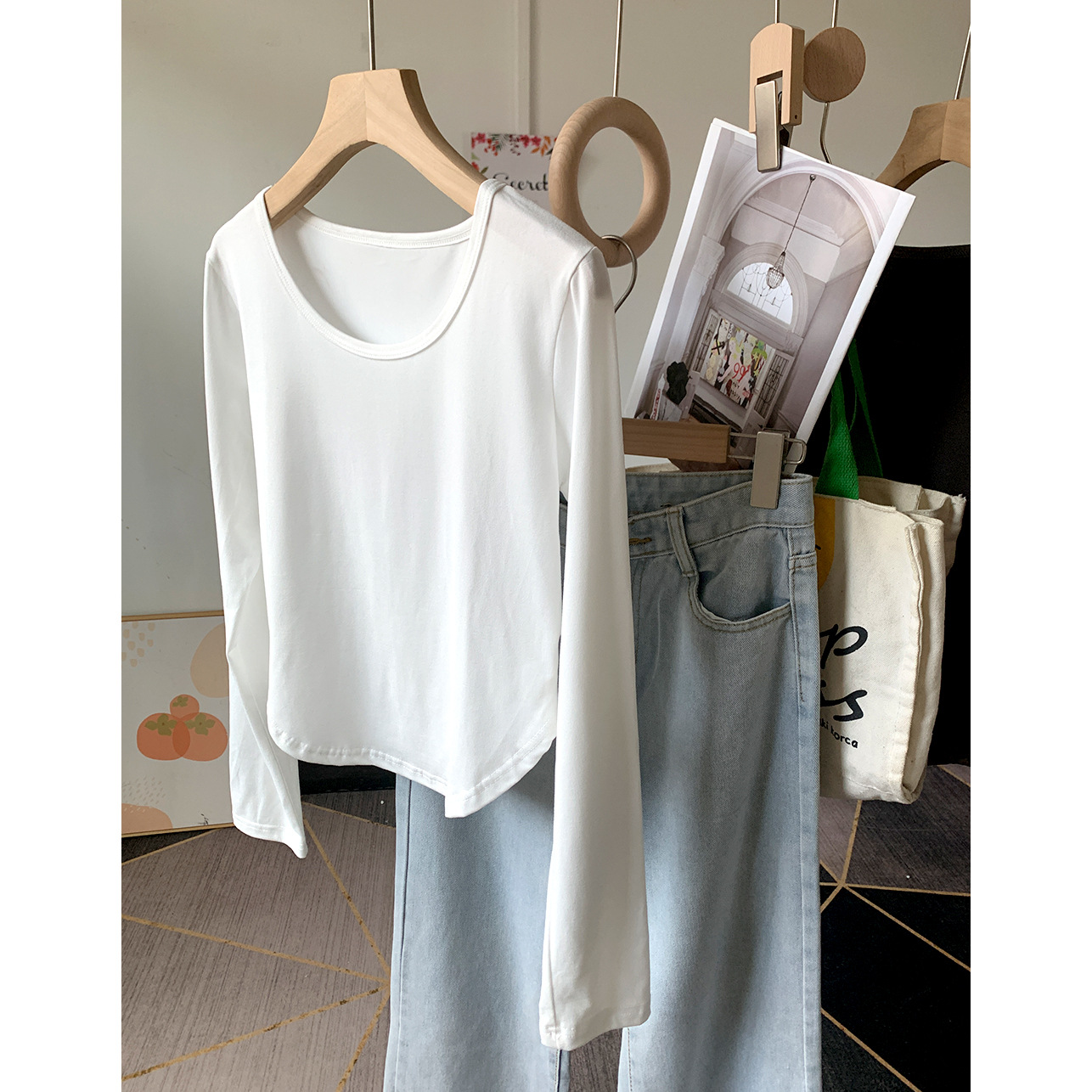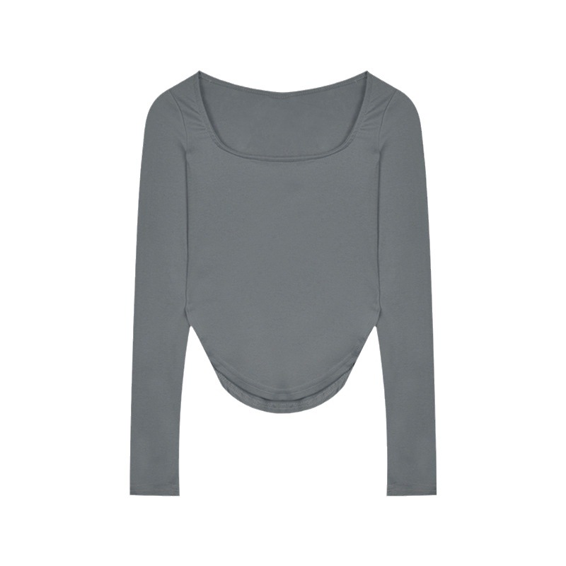 Футболка с нерегулярными длинными рукавами женская ранняя весна новая корейская U-образная рубашка с нижним подолом