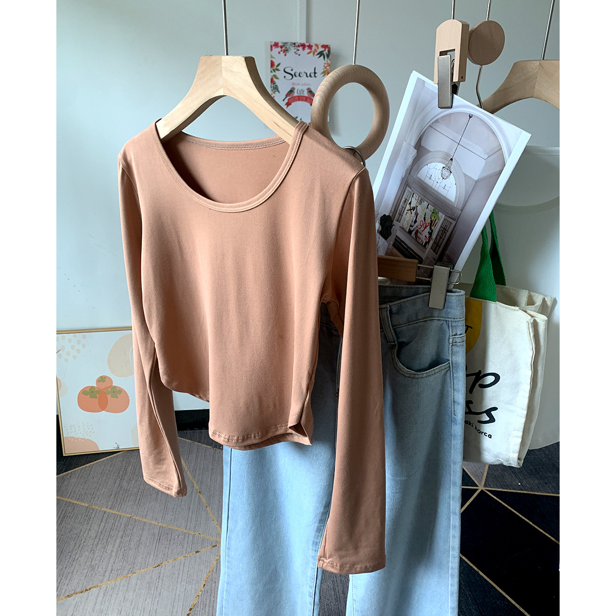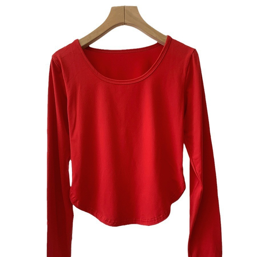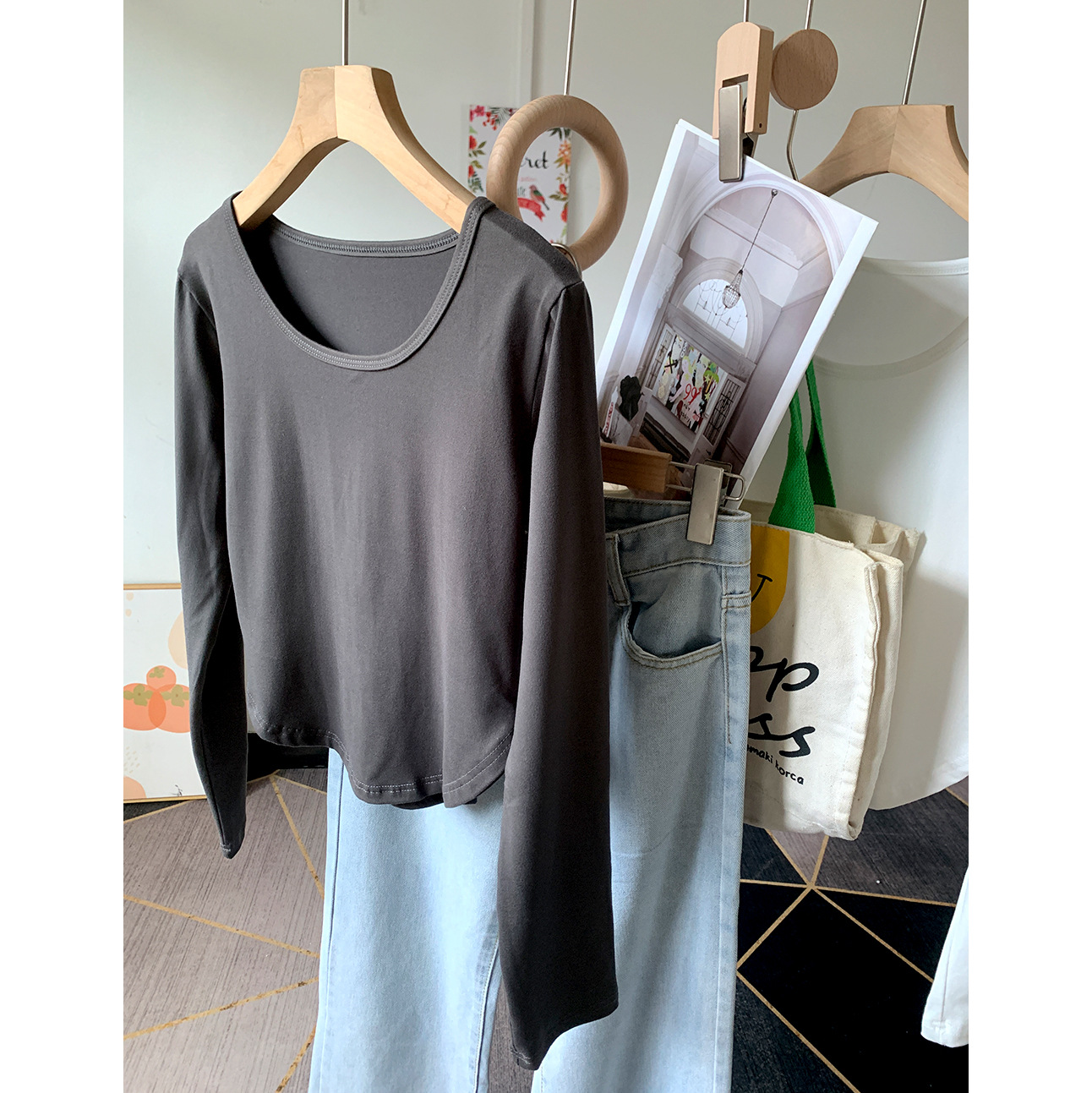 Футболка с нерегулярными длинными рукавами женская ранняя весна новая корейская U-образная рубашка с нижним подолом