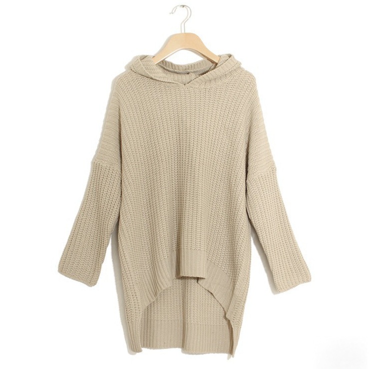 Главная страница > 2023 осень и зима новая длинная рубашка с капюшоном спереди и короткая спина длинная свободная вязаная свитер пальто 411091