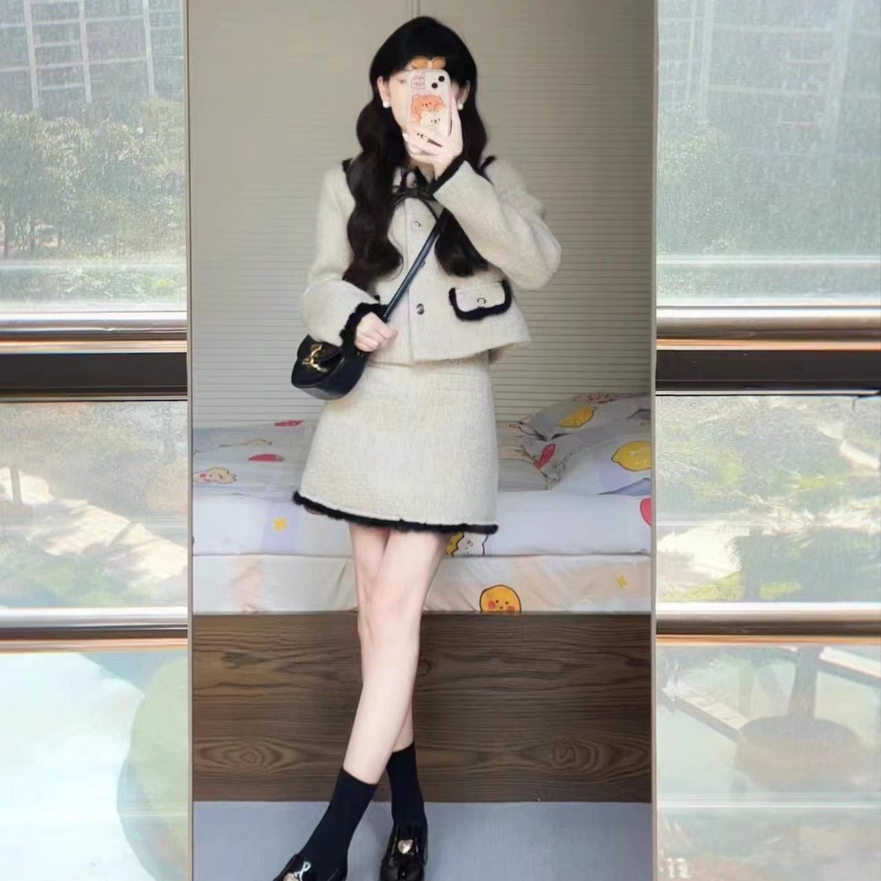 Костюм в стиле Xiaoxiang, Женский на весну и осень, в западном стиле, светская львица, уменьшающая возраст, короткое пальто с завязкой-бабочкой, юбка, костюм из двух предметов