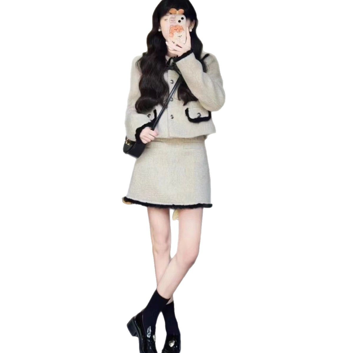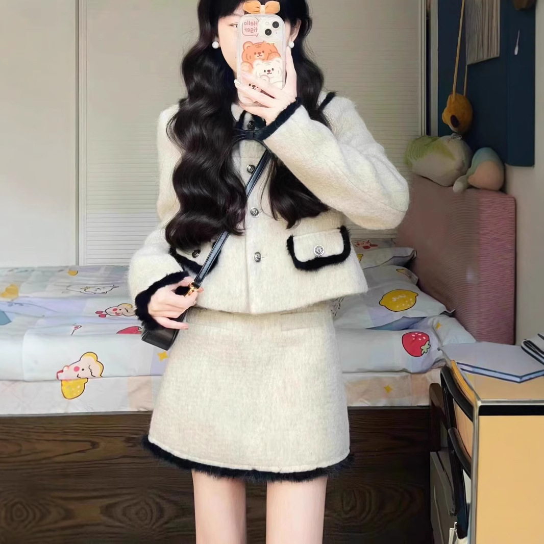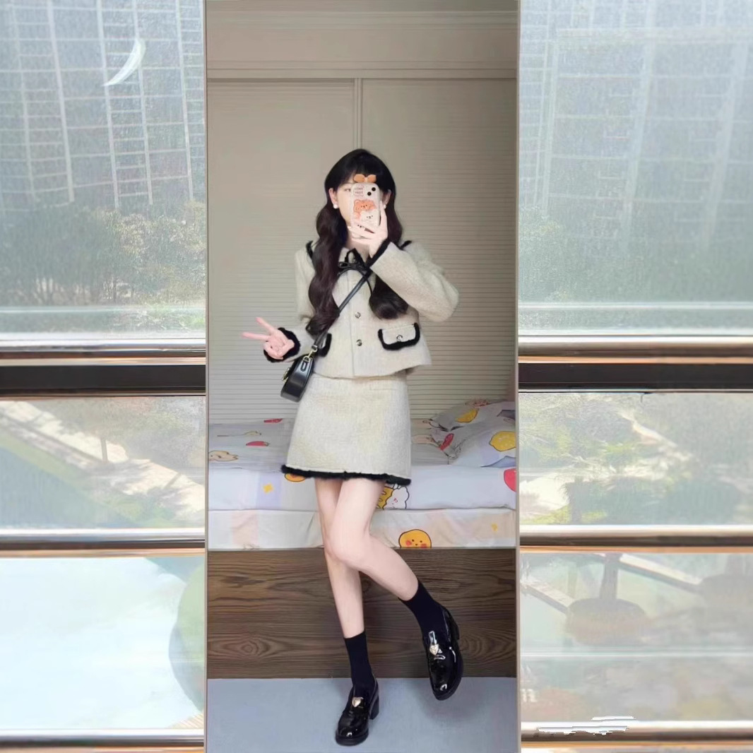 Главная страница > Костюм в стиле Xiaoxiang, Женский на весну и осень, в западном стиле, светская львица, уменьшающая возраст, короткое пальто с завязкой-бабочкой, юбка, костюм из двух предметов