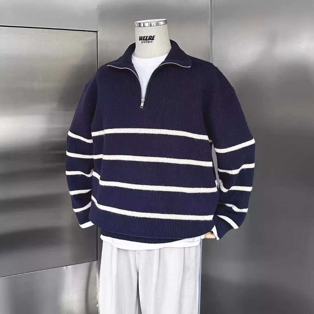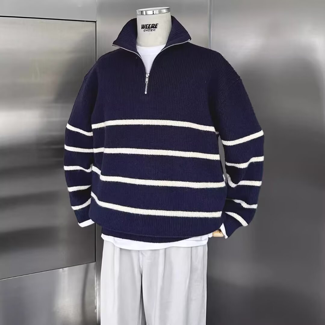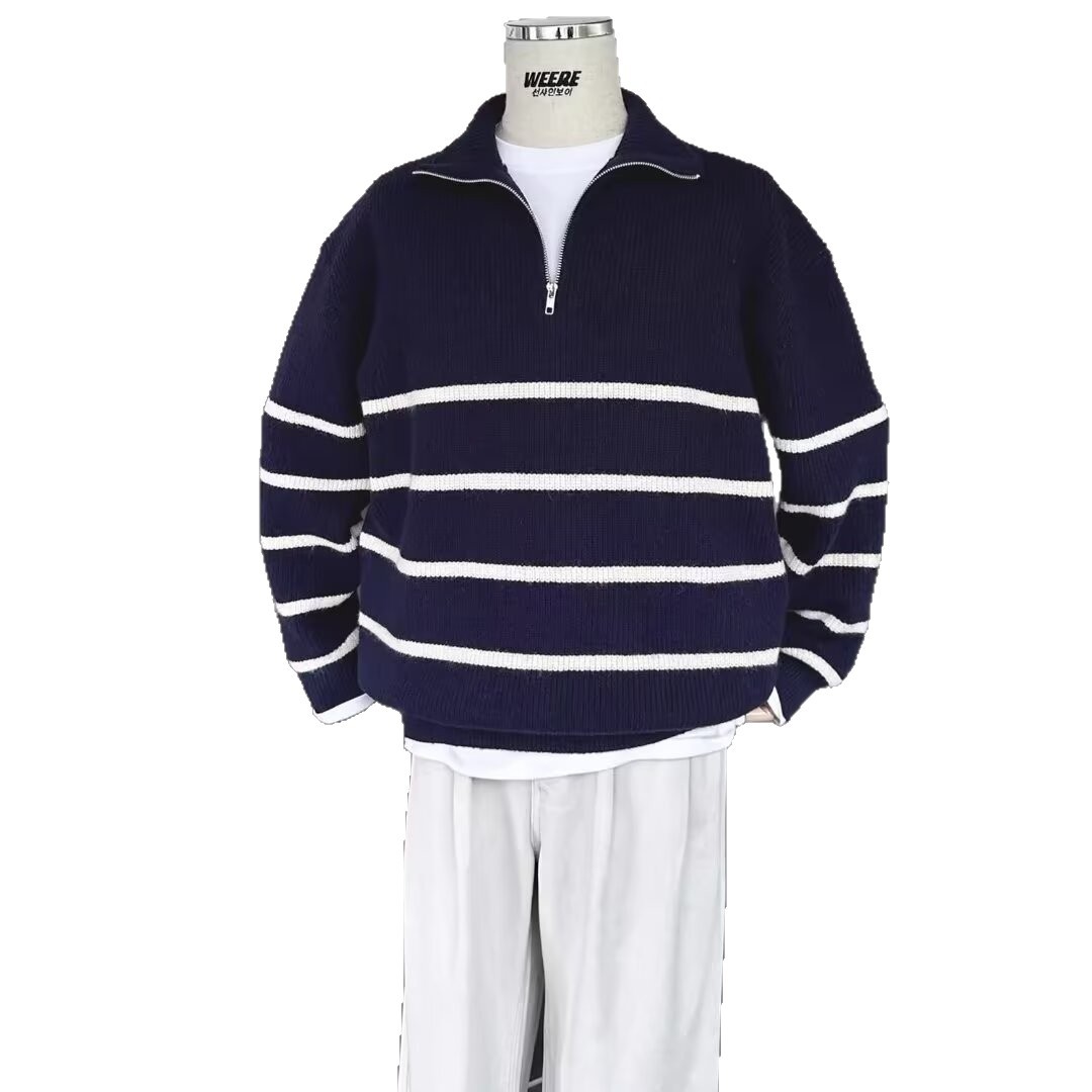 Главная страница > Прямые продажи с фабрики, весенне-осенняя новая модная брендовая полосатая рубашка-поло с длинными рукавами, мужской свободный свитер на молнии в американском стиле ретро
