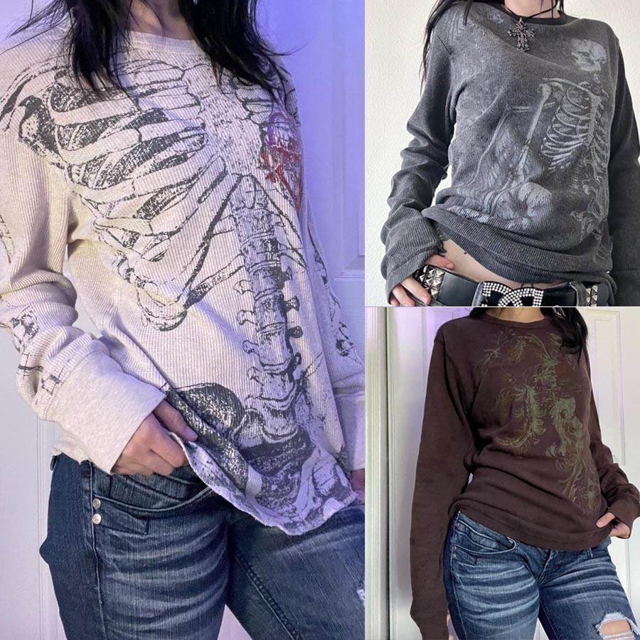 Главная страница > Трансграничные новые осенние и зимние женщины с длинными рукавами ямы свитера с круглым вырезом футболки с печатью ямы случайные футболки свитера Y2K
