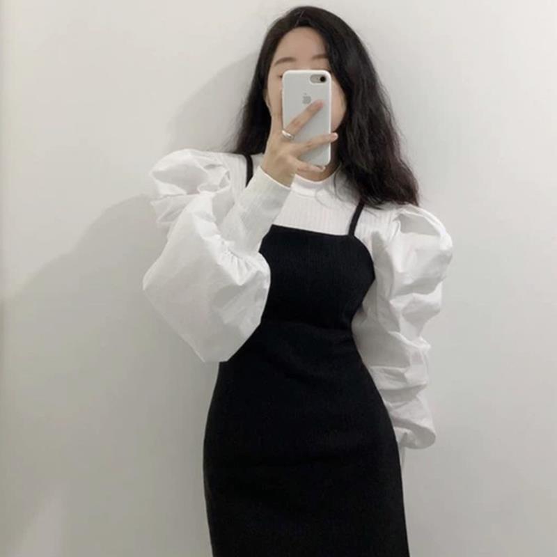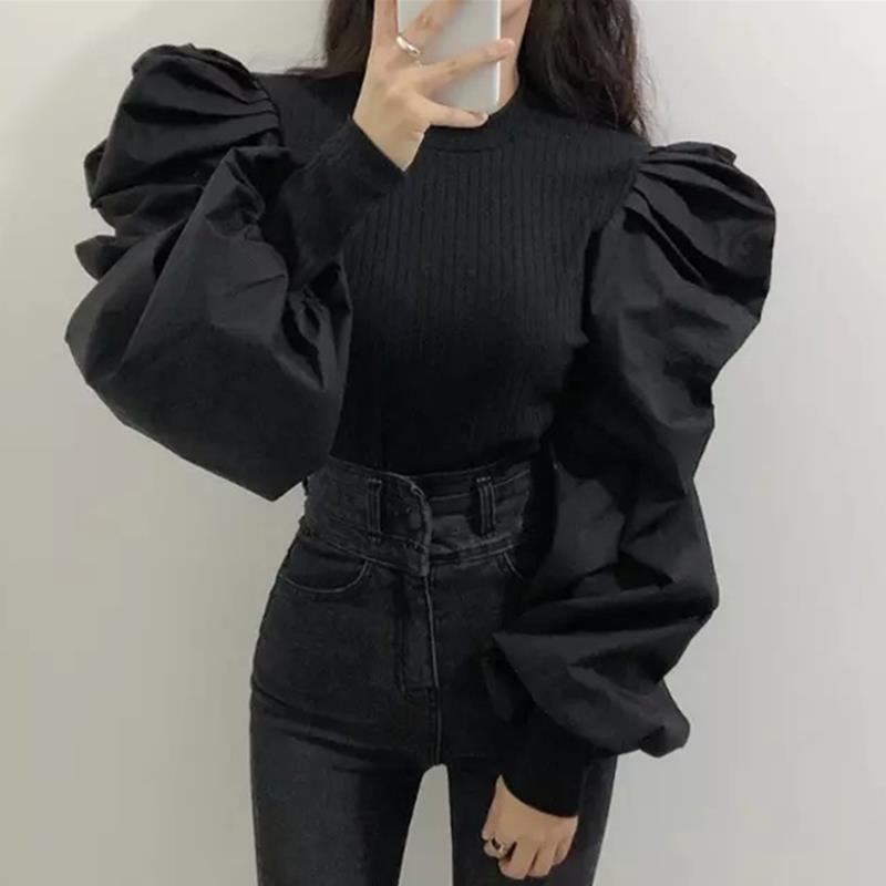 Главная страница > Корейская ранняя осенняя тонкая рубашка в дворцовом стиле с круглым вырезом и резьбой, с манжетами и пышными рукавами, тонкий топ для женщин