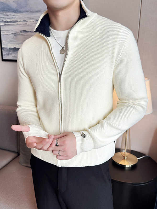 Главная страница > 2024 новый осенний и зимний толстый мужской свитер кардиган английский индивидуальность застежка-молния стоячий воротник снаружи носить вязаный свитер