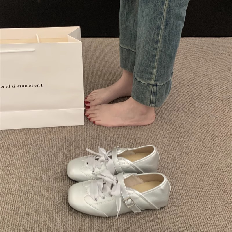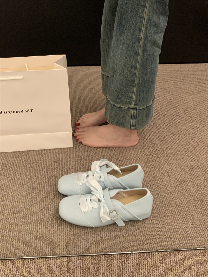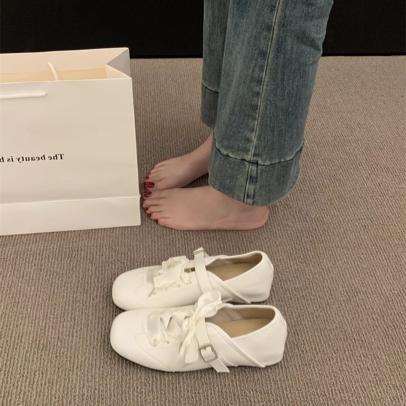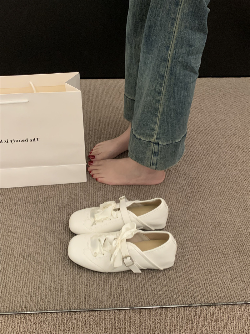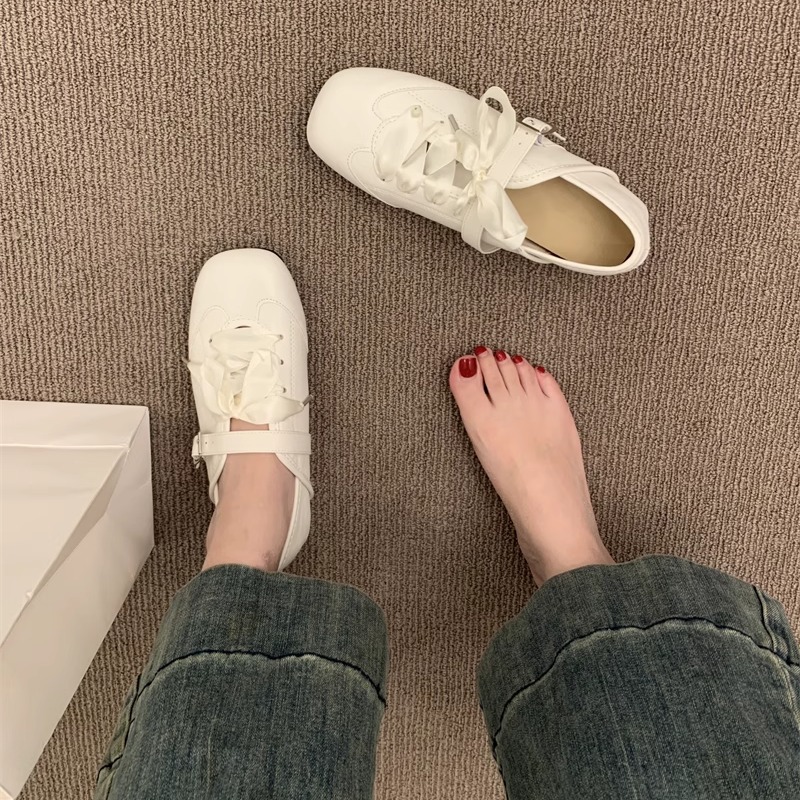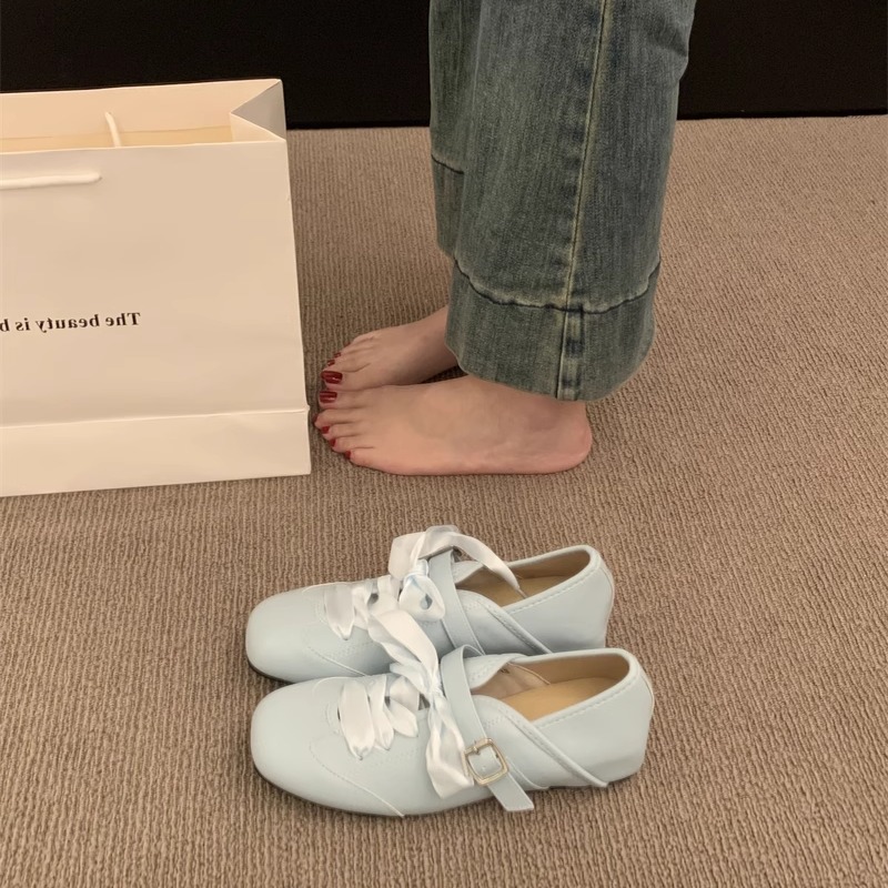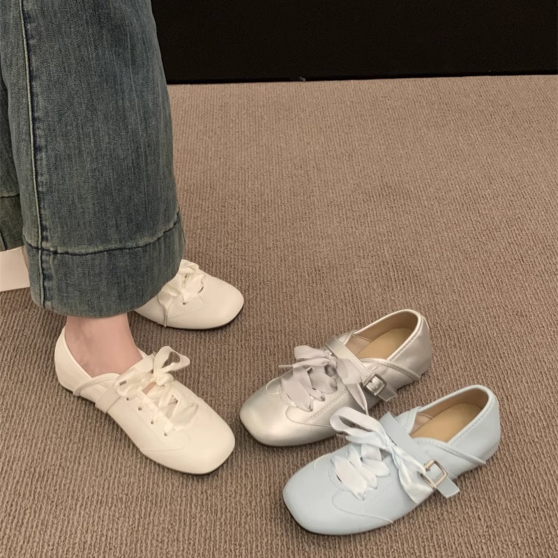 Главная страница > Новый корейский! Кружевная обувь для балета Женская весна и лето 2025 новый плоский фон пряжка с неглубоким ртом