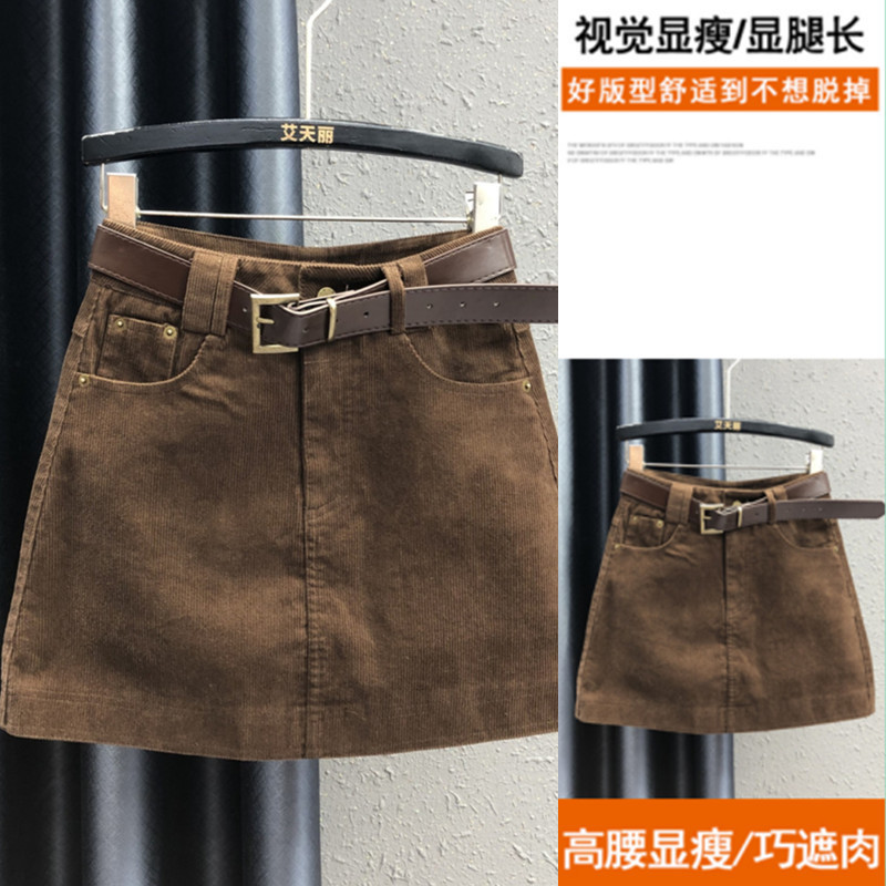 Вельветовая юбка вельветовая юбка женская осень-зима новая анти-свет большой размер толстый мм высокая талия мода тонкая