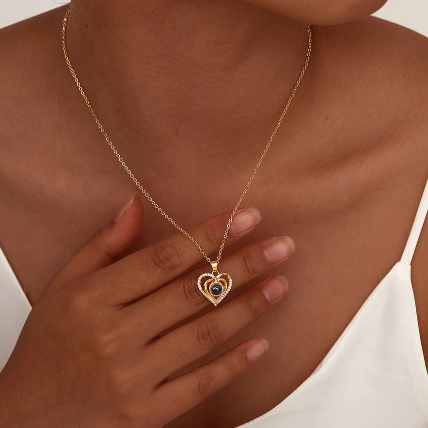 Главная страница > Трансграничное хит продаж, Двухслойное ожерелье с проекцией любви, женское на 100 языках, индивидуальная цветная фото высокой четкости, усовершенствованная цепочка на ключицу
