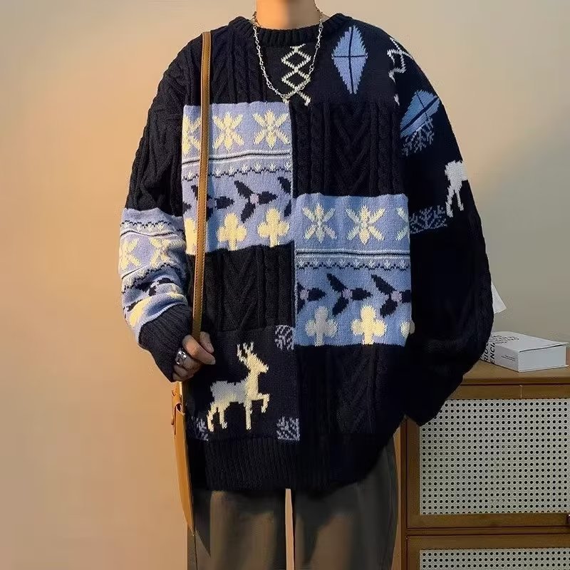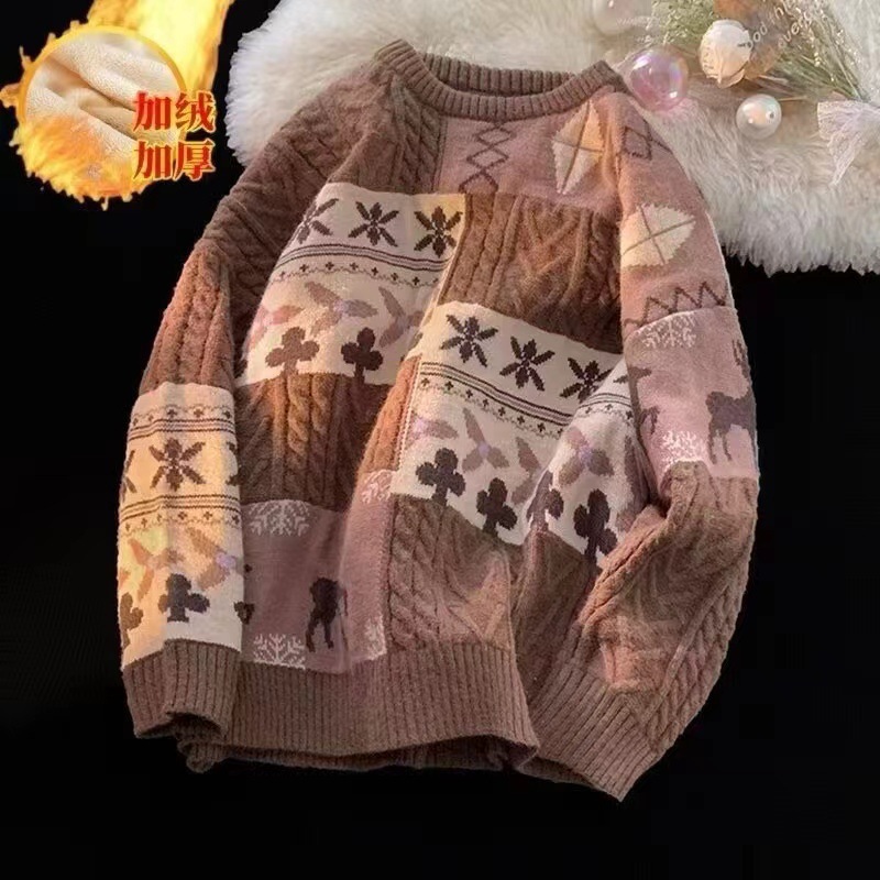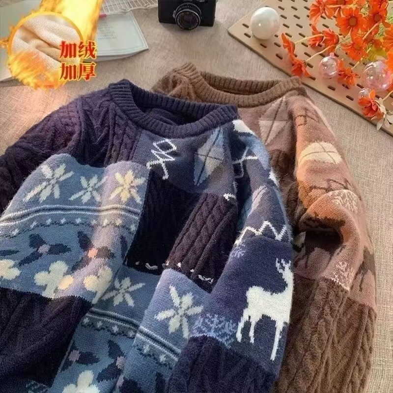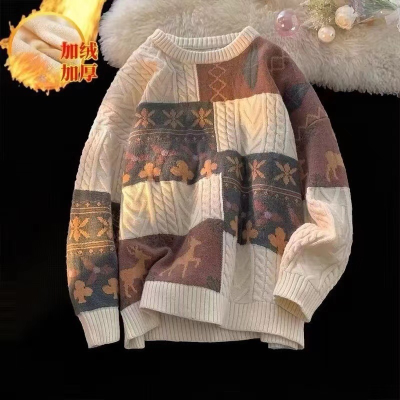 Главная страница > Осенний и зимний мягкий клейкий бархатный толстый рождественский свитер мужской гонконгский стиль ретро чувство ленивый стиль свитер на месте
