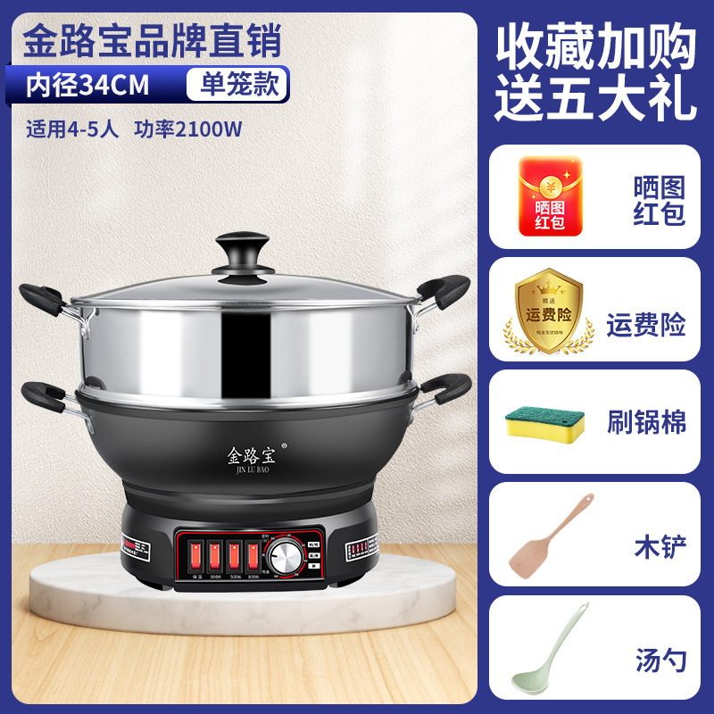 Электрический вок, чугунная сковорода без покрытия с антипригарным покрытием, бытовая многофункциональная электрическая пароварка для приготовления пищи и приготовления на пару, электрическая кастрюля