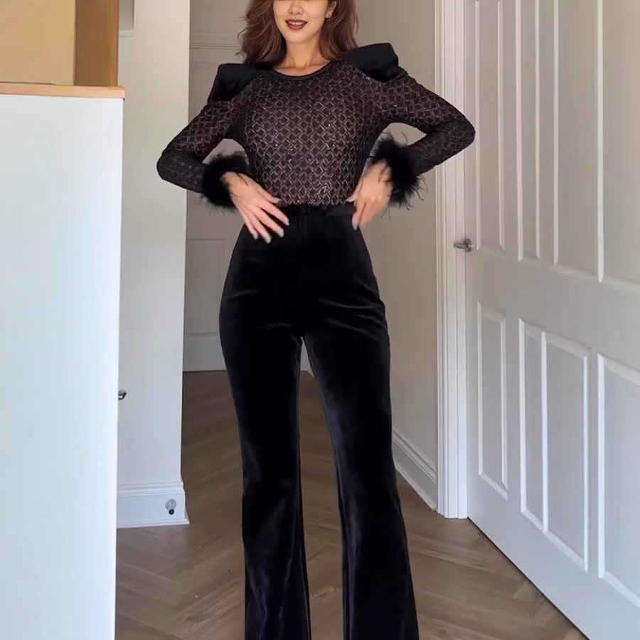Главная страница > Кросс-бордер 2025 Европейские и американские осенне-зимние новые бархатные комбинезоны с длинным рукавом INS повседневные женские брюки для вечеринок