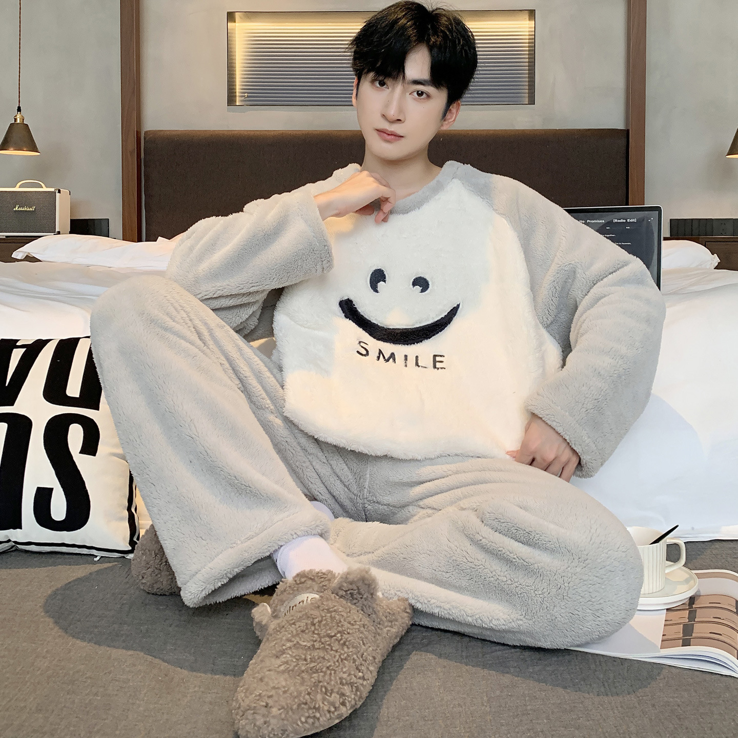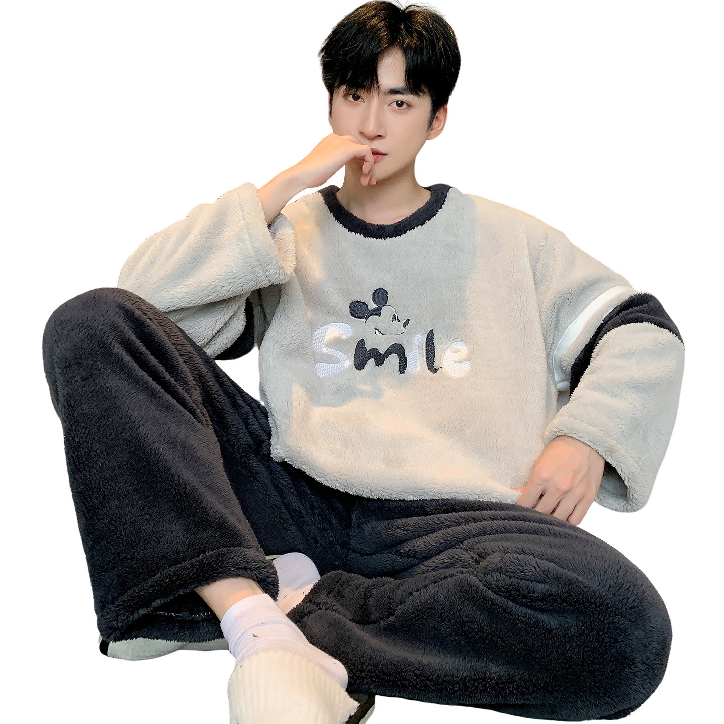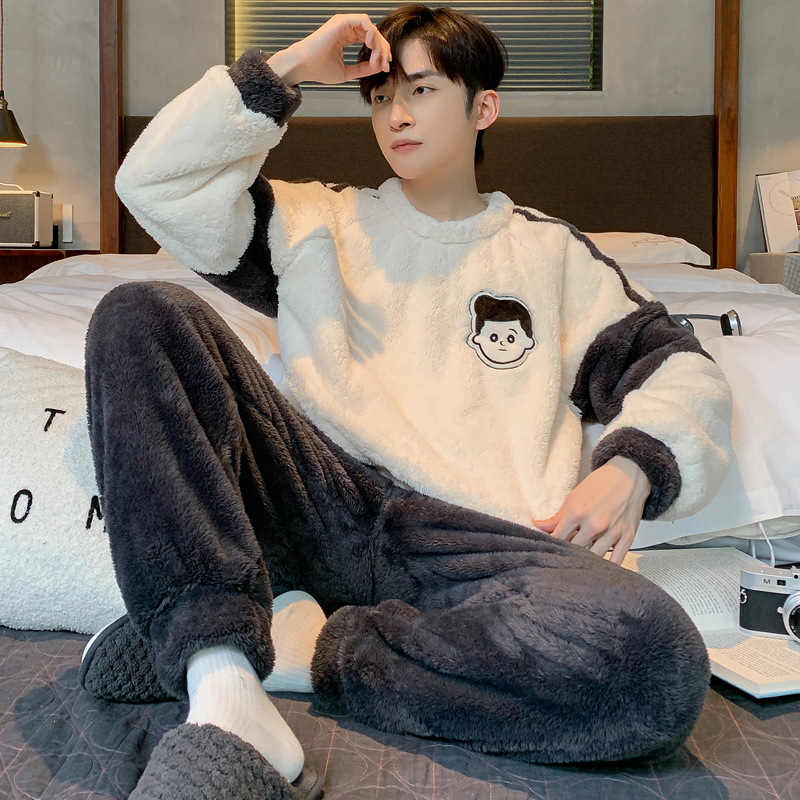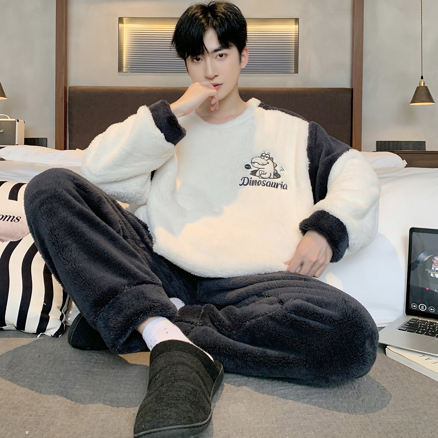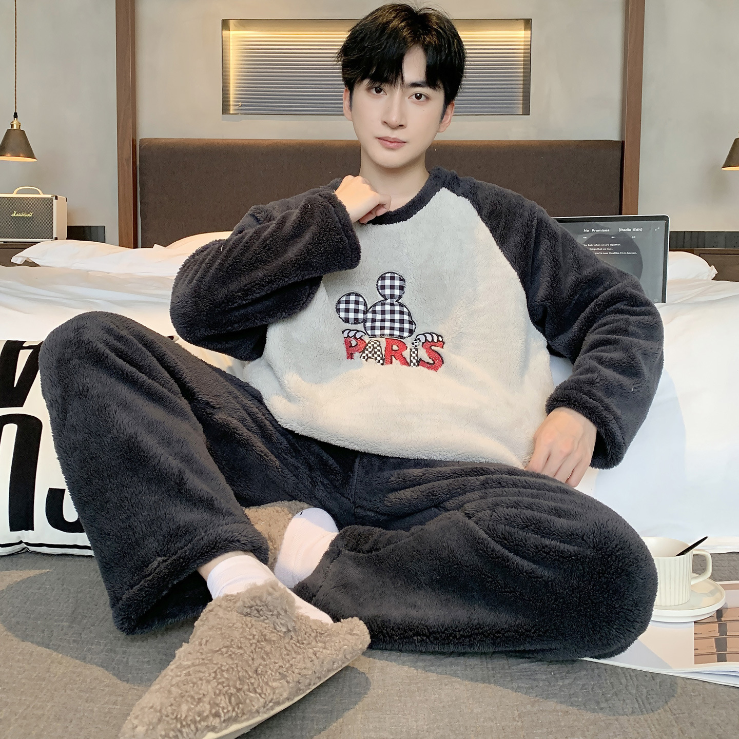Главная страница > Мужская пижама для осени и зимы, утолщенный коралловый флис, повседневный костюм большого размера с мультяшным принтом, новая модель 2025 года, домашняя одежда для мальчиков