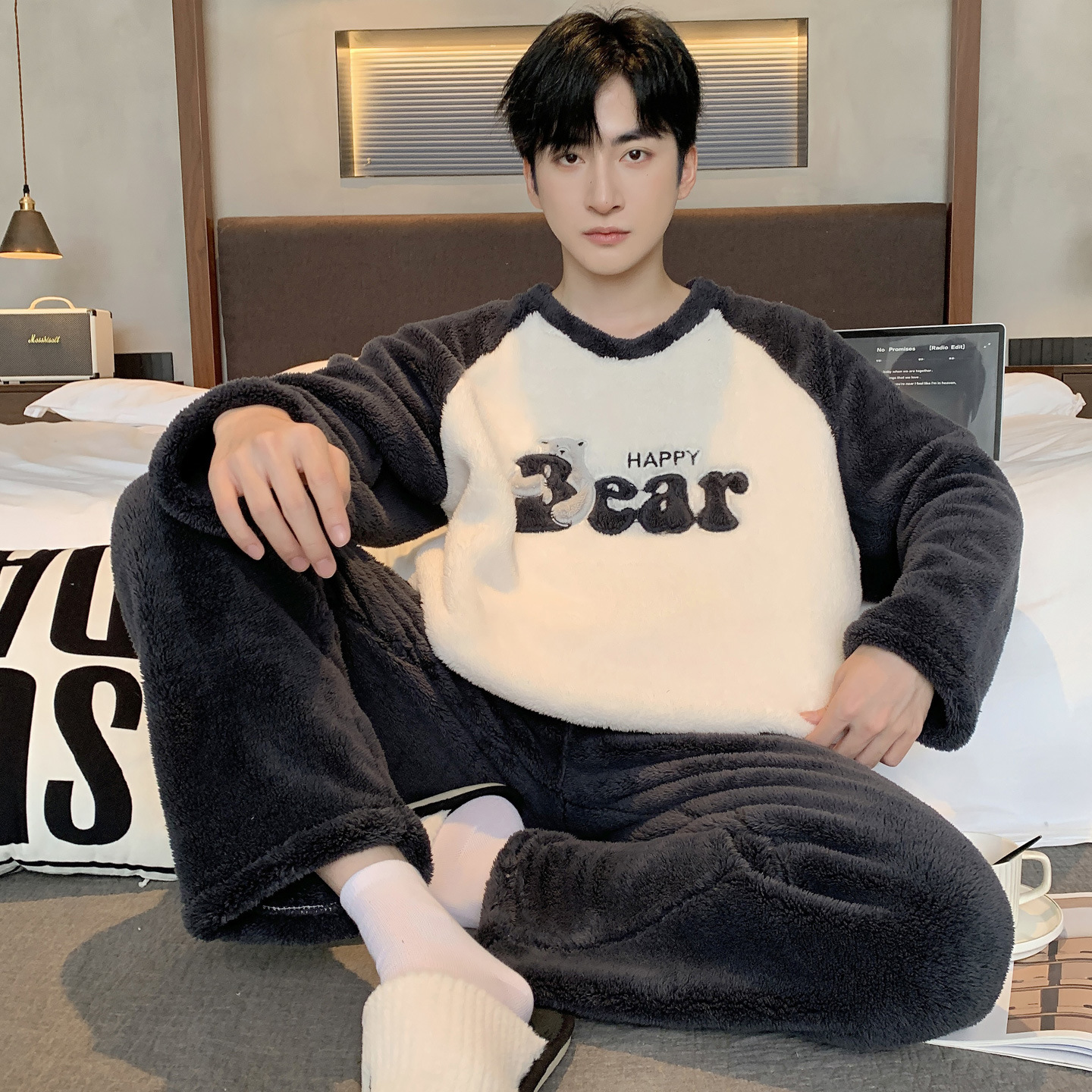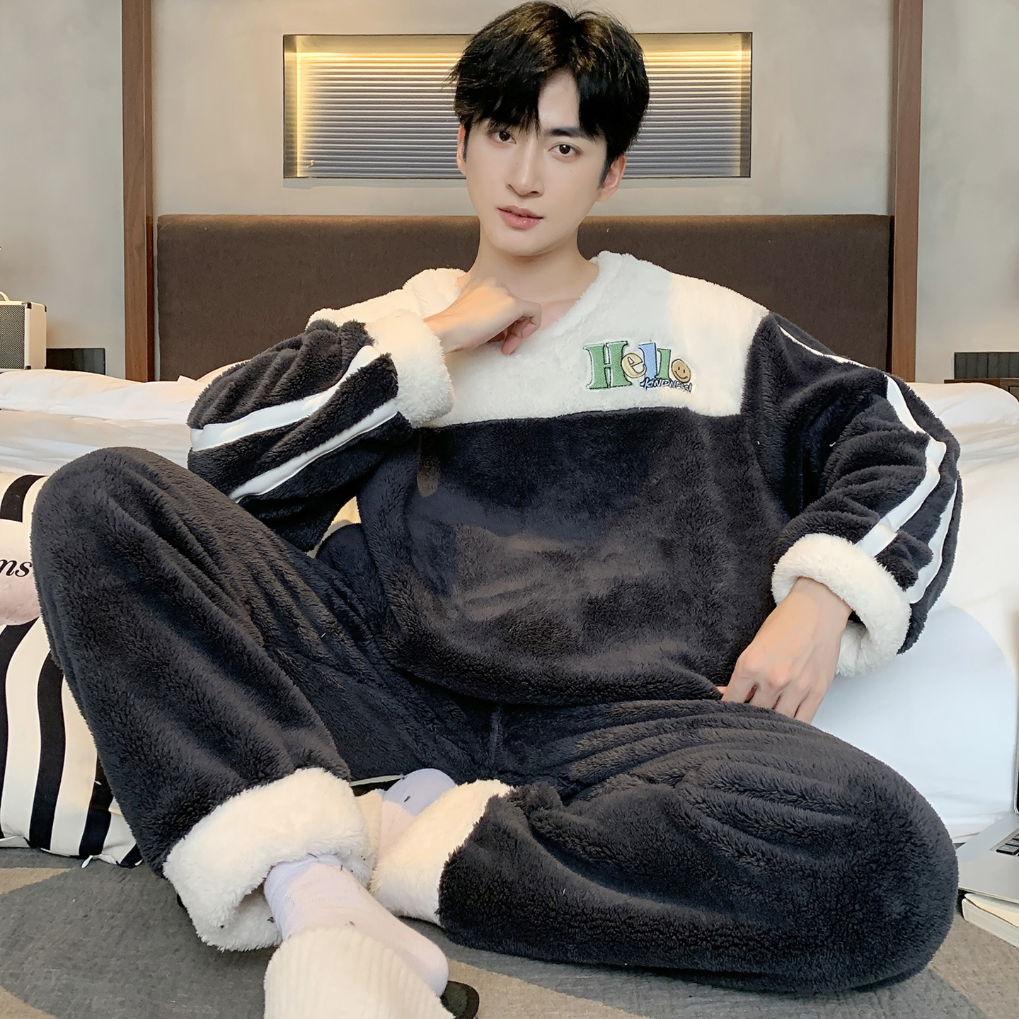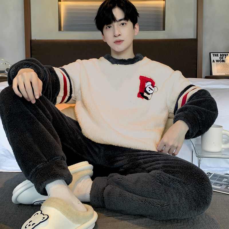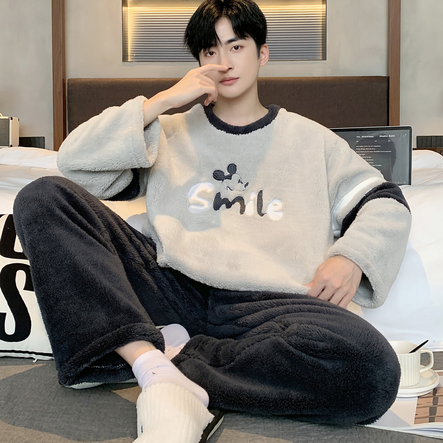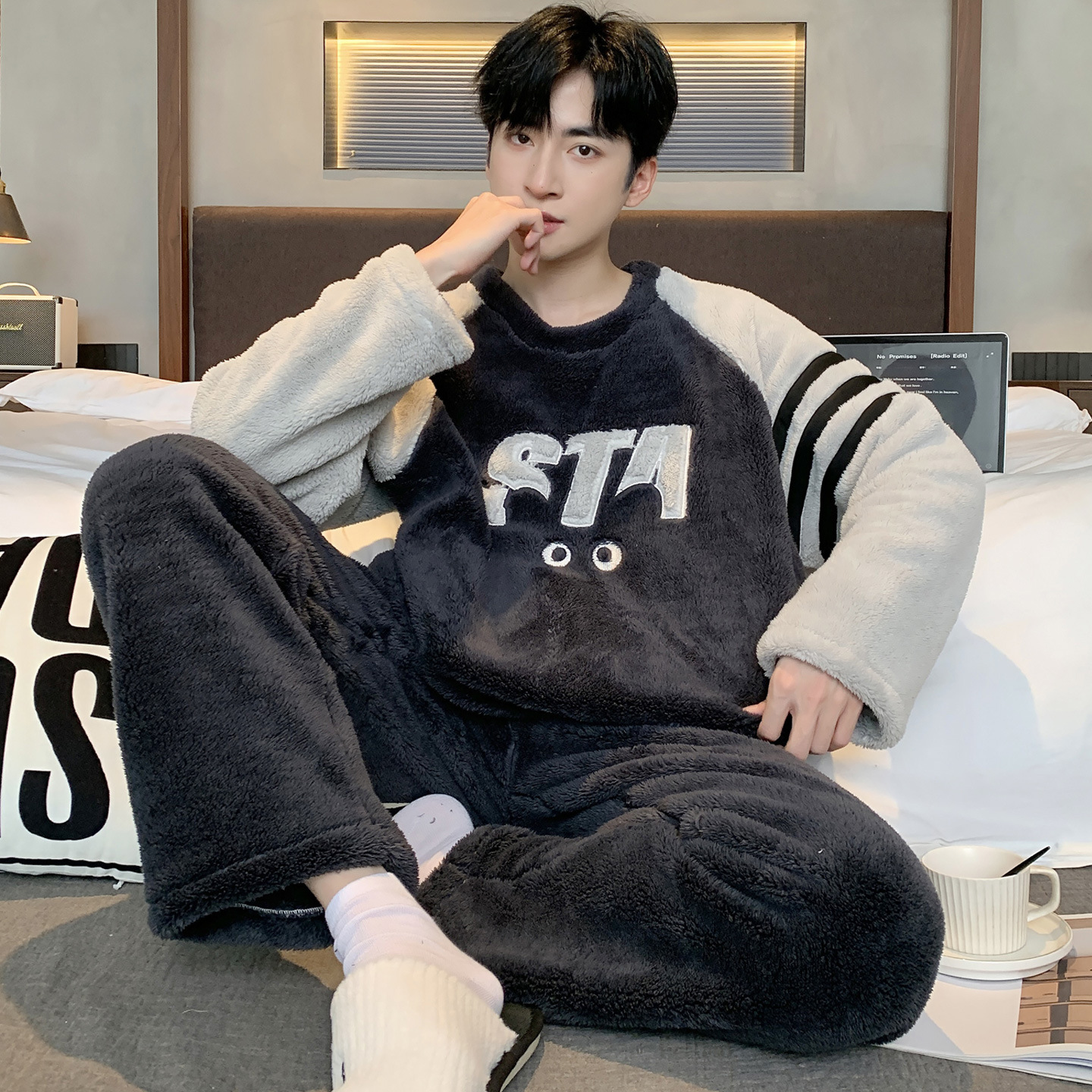 Главная страница > Мужская пижама для осени и зимы, утолщенный коралловый флис, повседневный костюм большого размера с мультяшным принтом, новая модель 2025 года, домашняя одежда для мальчиков