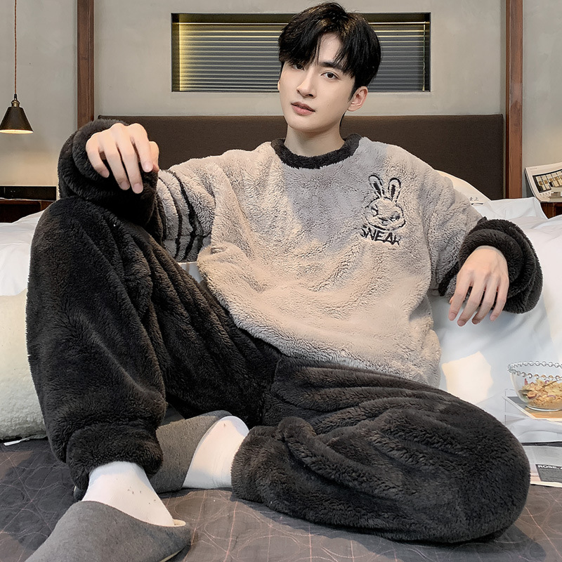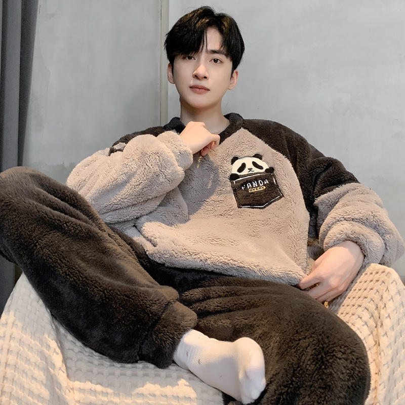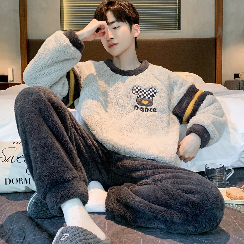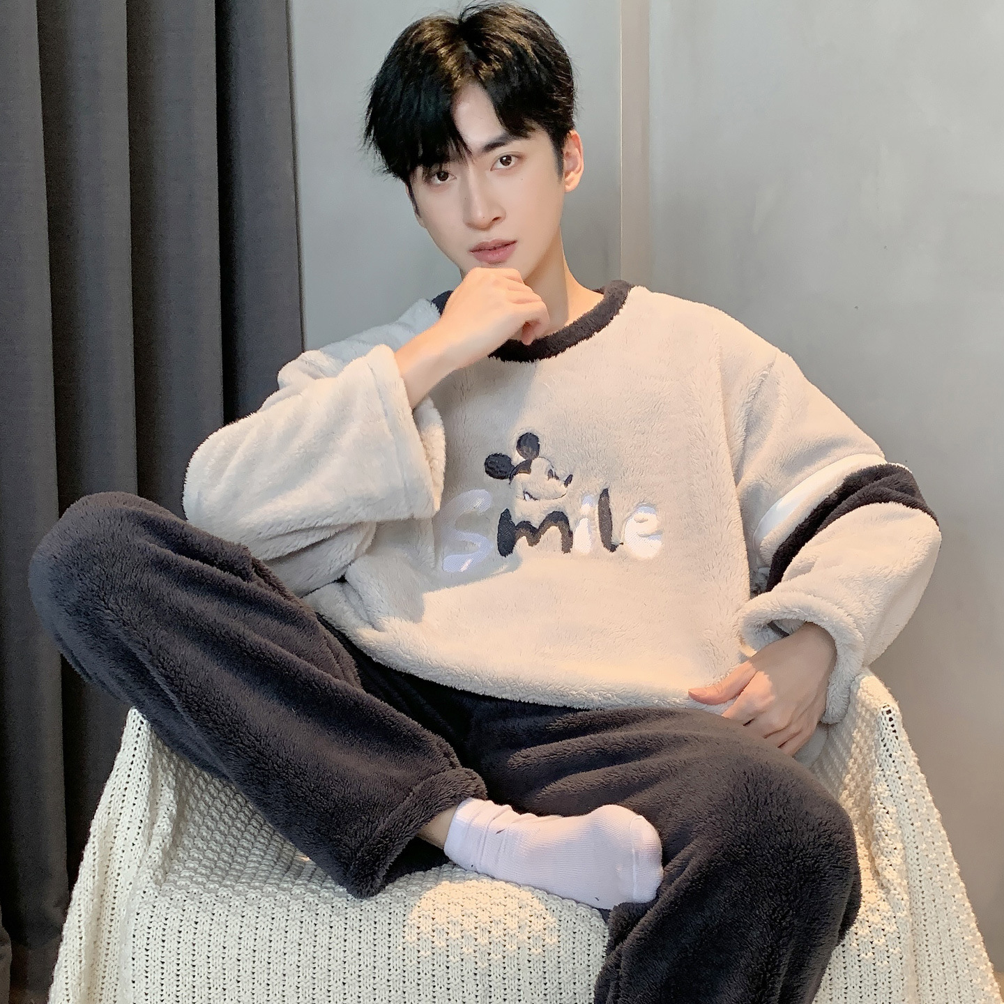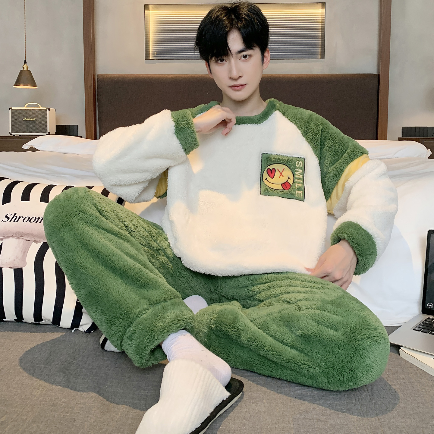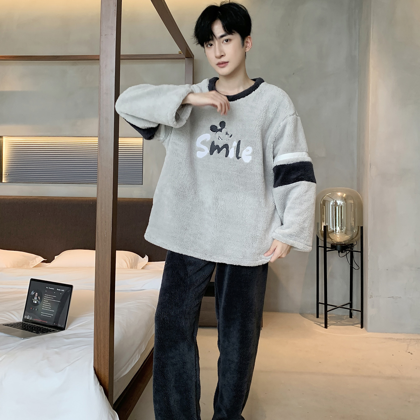 Главная страница > Мужская пижама для осени и зимы, утолщенный коралловый флис, повседневный костюм большого размера с мультяшным принтом, новая модель 2025 года, домашняя одежда для мальчиков