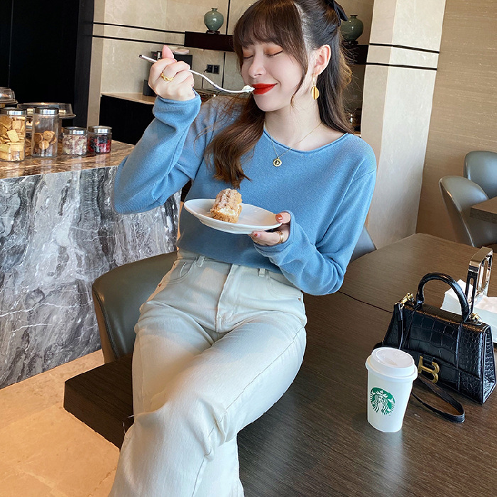Главная страница > Белый трикотаж, женский весенне-осенний костюм-рубашка с низом ранней осени 2024, новый тонкий топ, осенне-зимний трикотаж