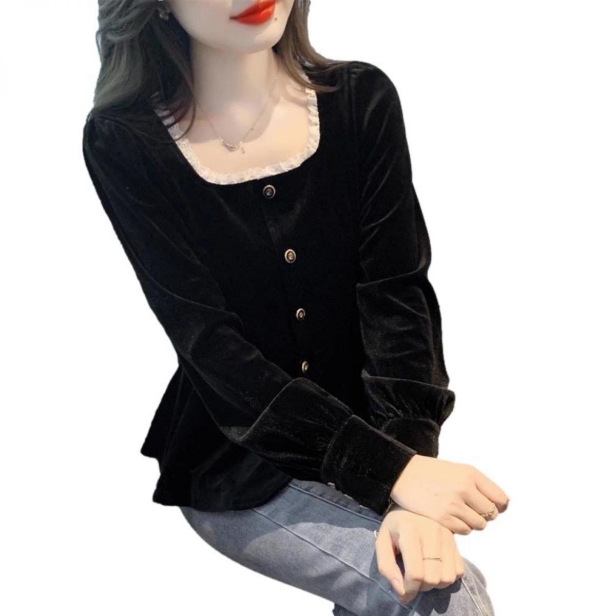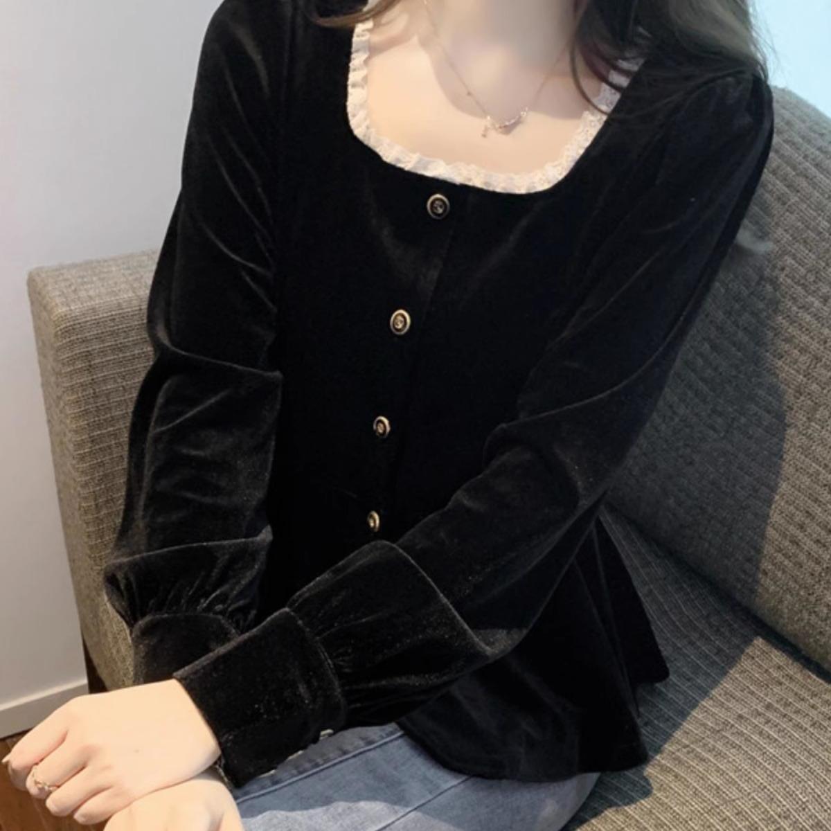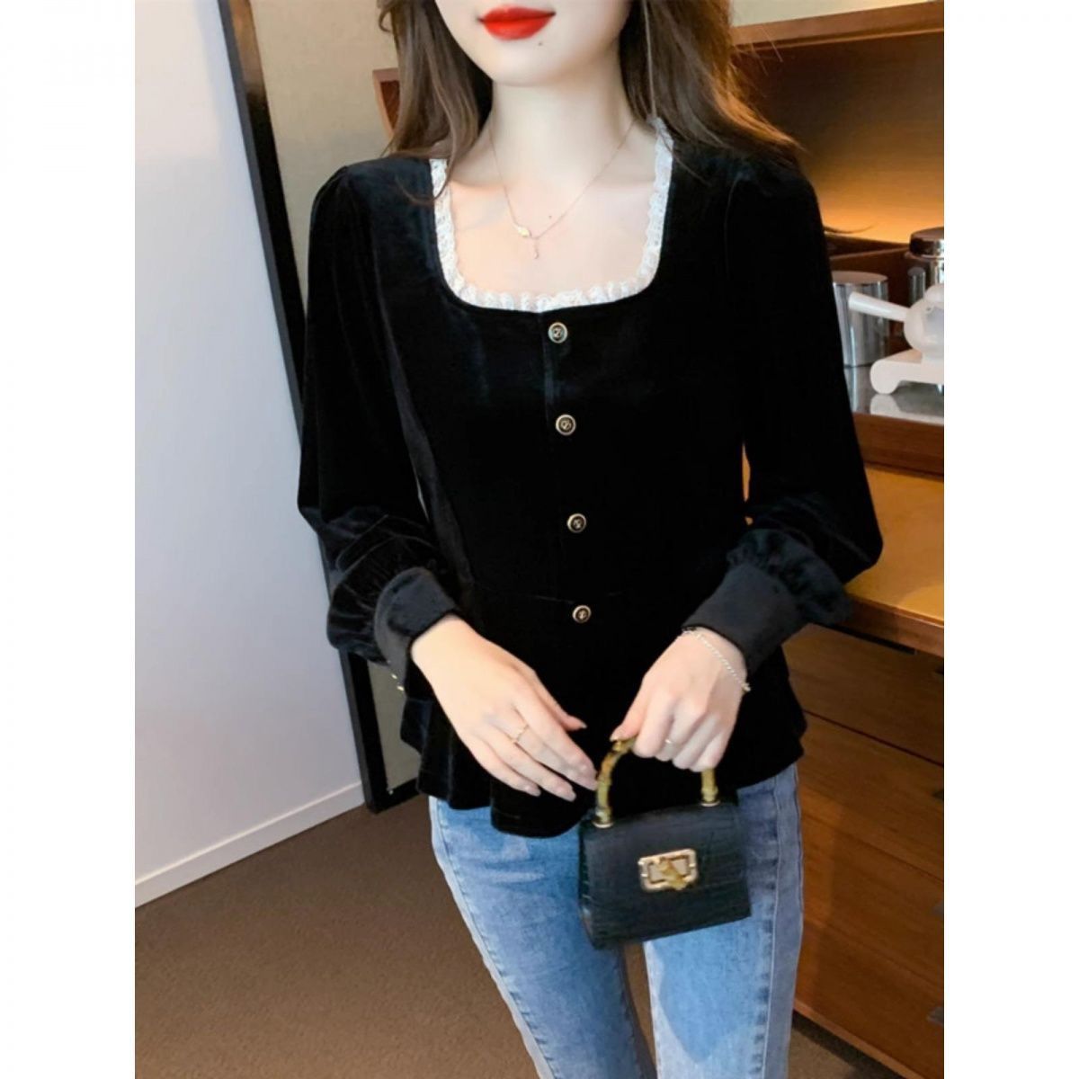 Главная страница > Женские осенние топы больших размеров, французские бархатные рубашки с квадратным вырезом и длинными рукавами, с кружевной отделкой, стройнящие и элегантные.