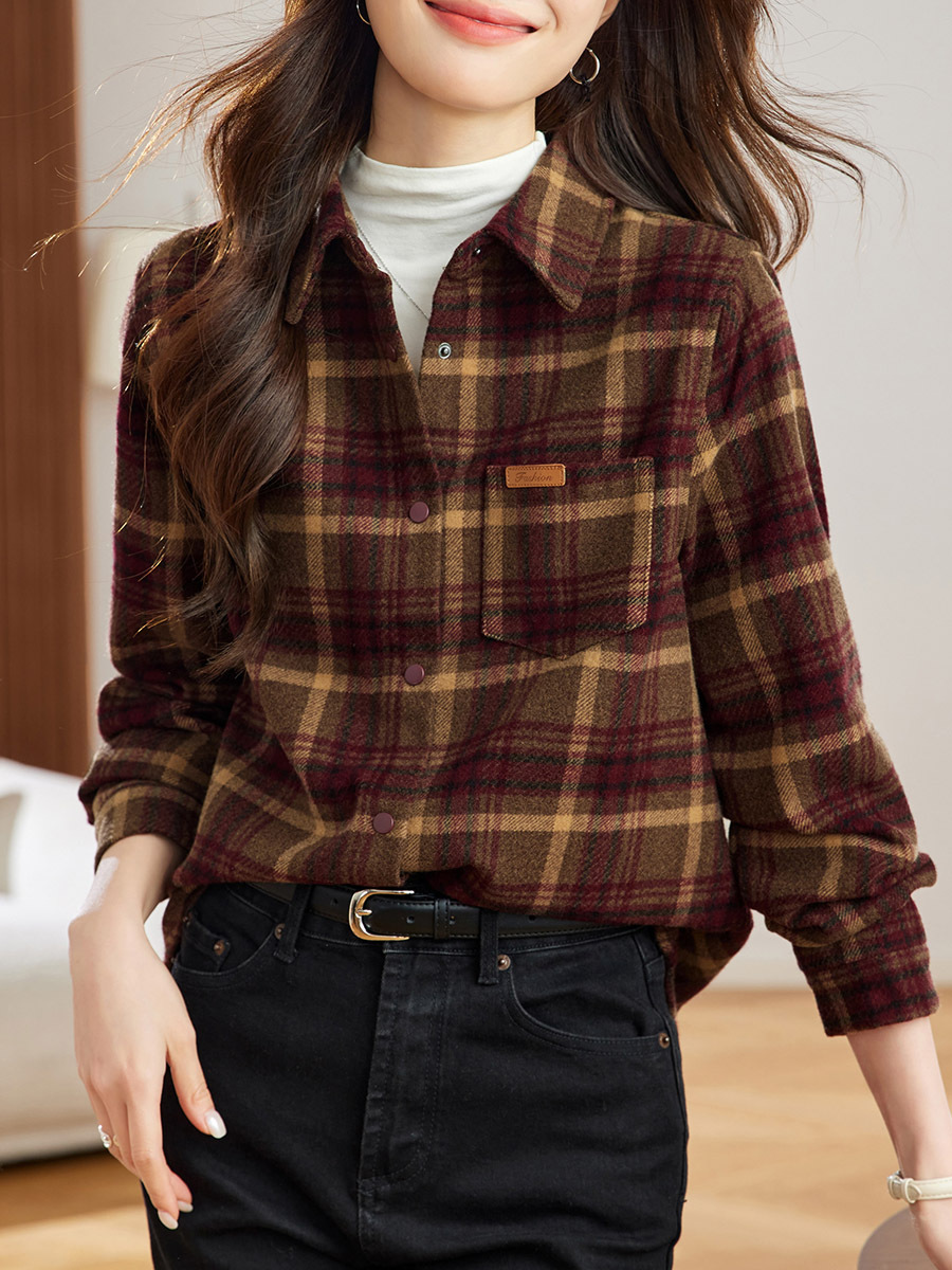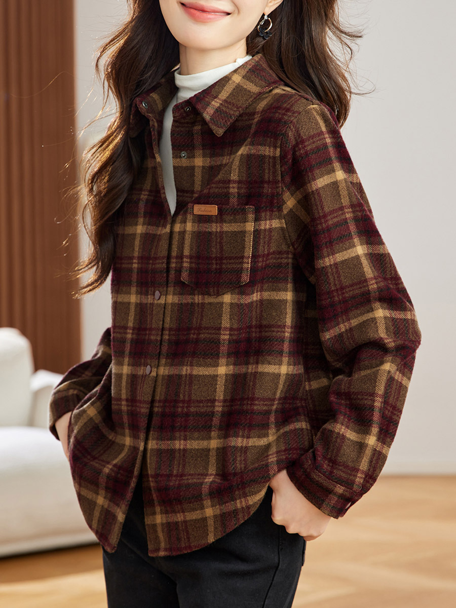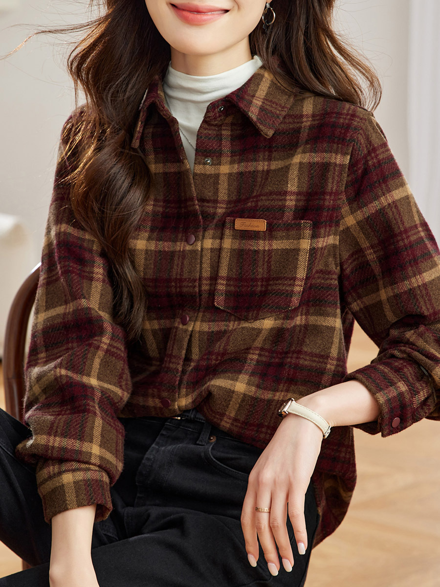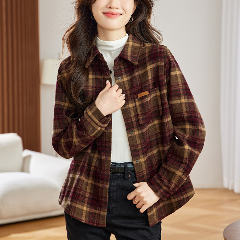 Главная страница > Женская шерстяная рубашка в крупную клетку, прямые поставки с фабрики, осенняя новинка, корейский ретро-стиль, свободная повседневная универсальная рубашка для женщин