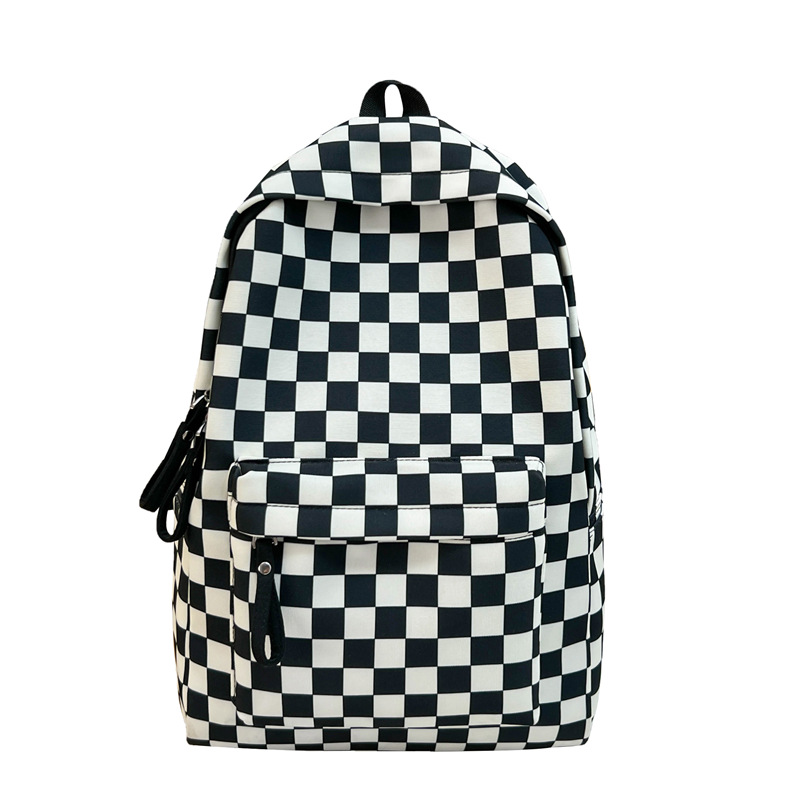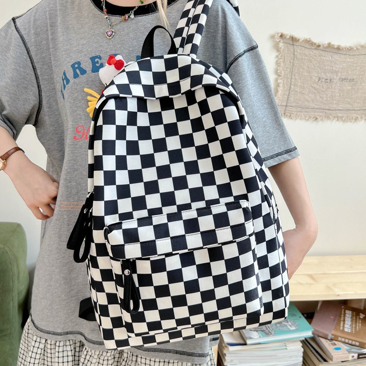 Главная страница > Новая простая ультралегкая черно-белая холщовая сумка в шахматном порядке, женский рюкзак большой вместимости, школьная сумка для учащихся начальной и средней школы, оптовая продажа