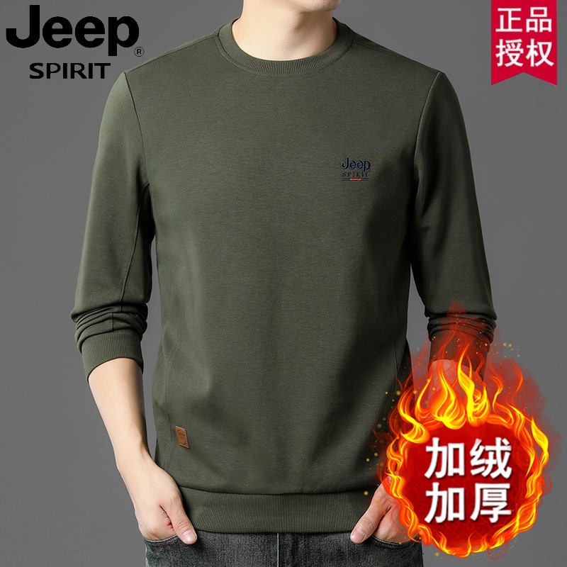 Главная страница > JEEP 2023 осенне-зимняя новая мужская рубашка с длинными рукавами, свитер, Повседневная модная нагрудная этикетка, закрытая флисовая подкладка с круглым вырезом