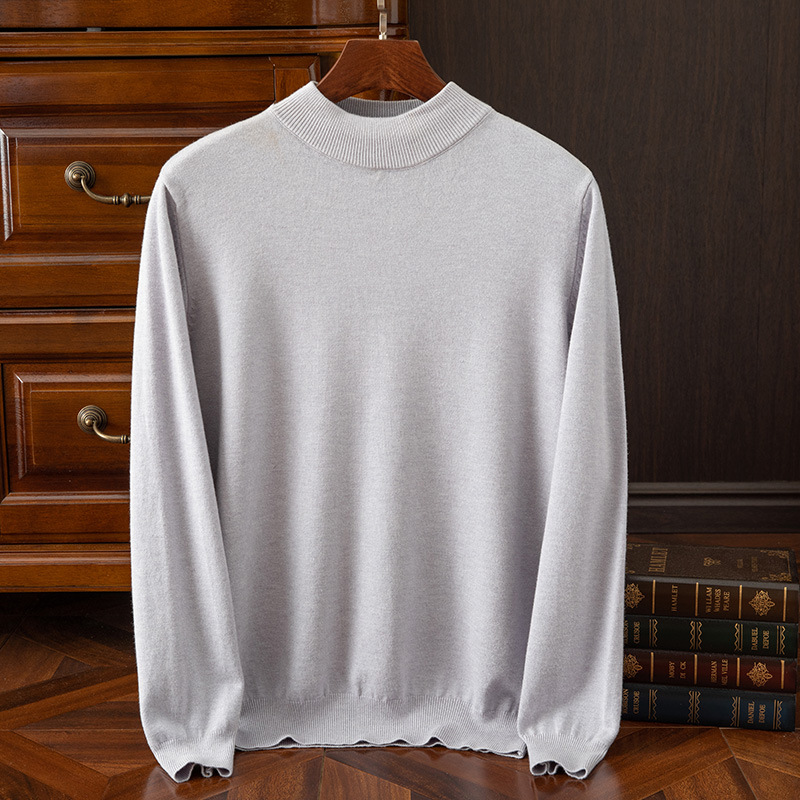 Главная страница > Мужской шерстяной свитер с воротником-стойкой, трикотажный топ с длинными рукавами, базовый слой для осени и зимы, свободный крой, большие размеры, толстый свитер, универсальный.