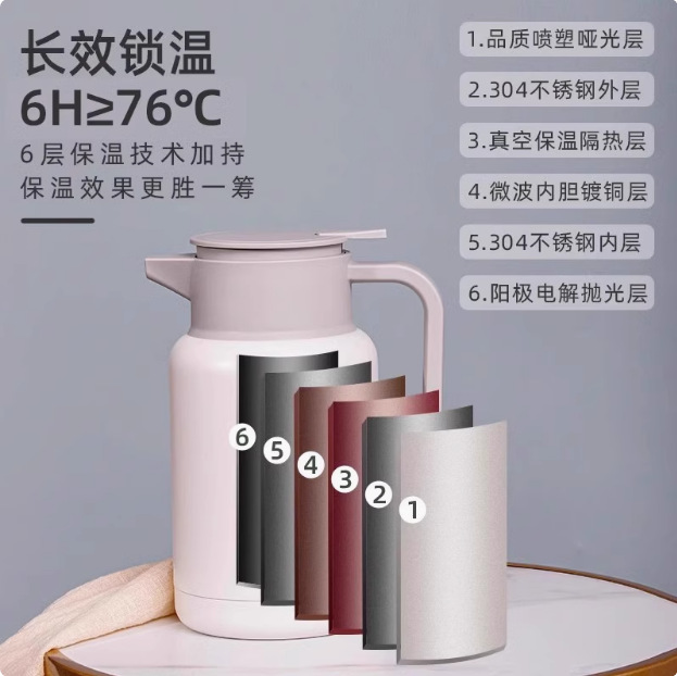 Изолированный горшок с красным шаром, термос большой емкости, портативный кофейник, термос с вкладышем из нержавеющей стали 304, бутылка с горячей водой