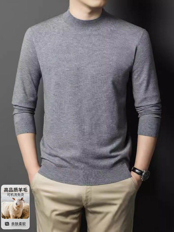 Главная страница > Камвольный трикотажный свитер с длинными рукавами мужской утолщенный осенью и зимой теплый полувысокий воротник