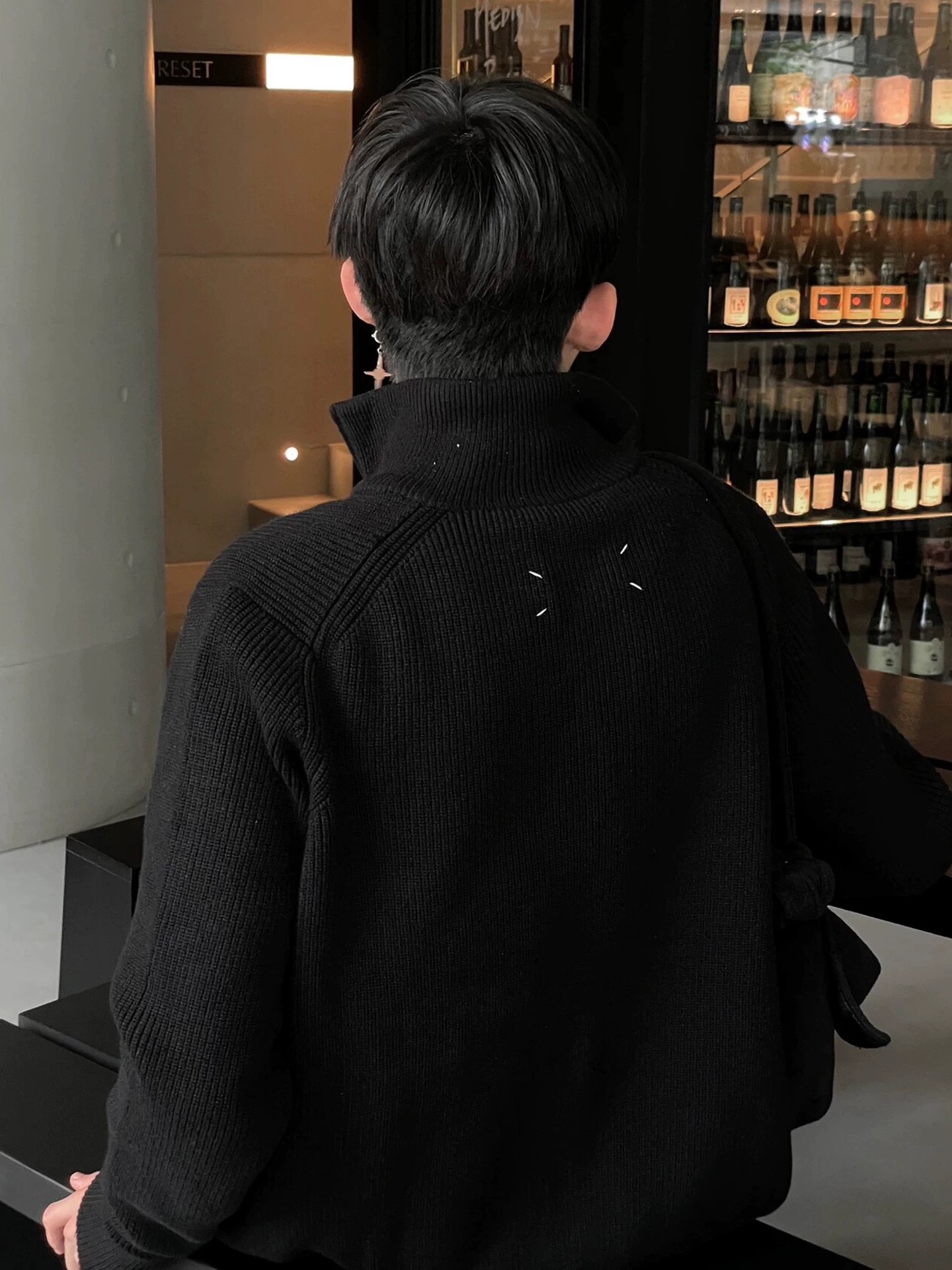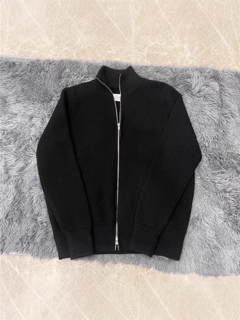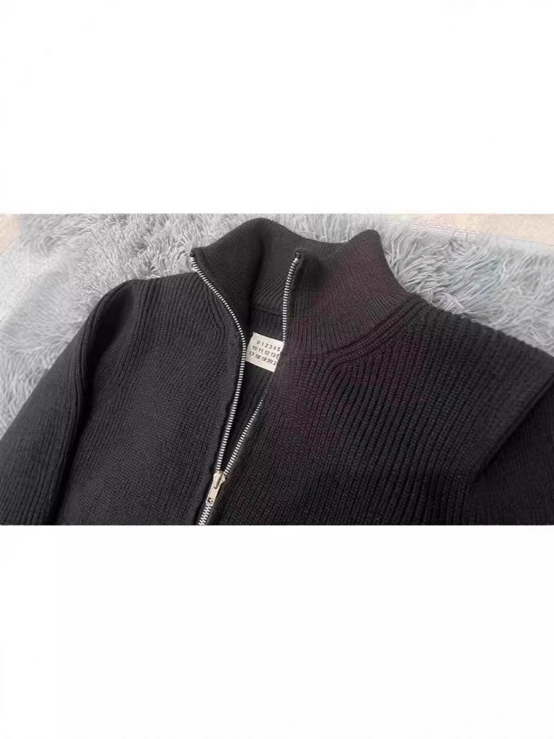 Главная страница > Кардиган-жакет в стиле Маргиле, высококачественный, с воротником-стойкой на молнии, для мужчин и женщин, плотная вязка.