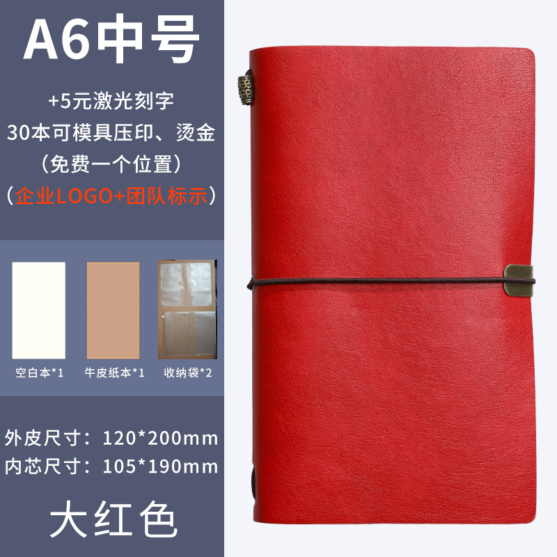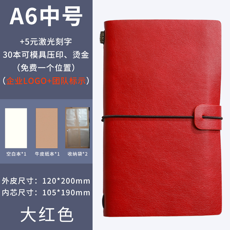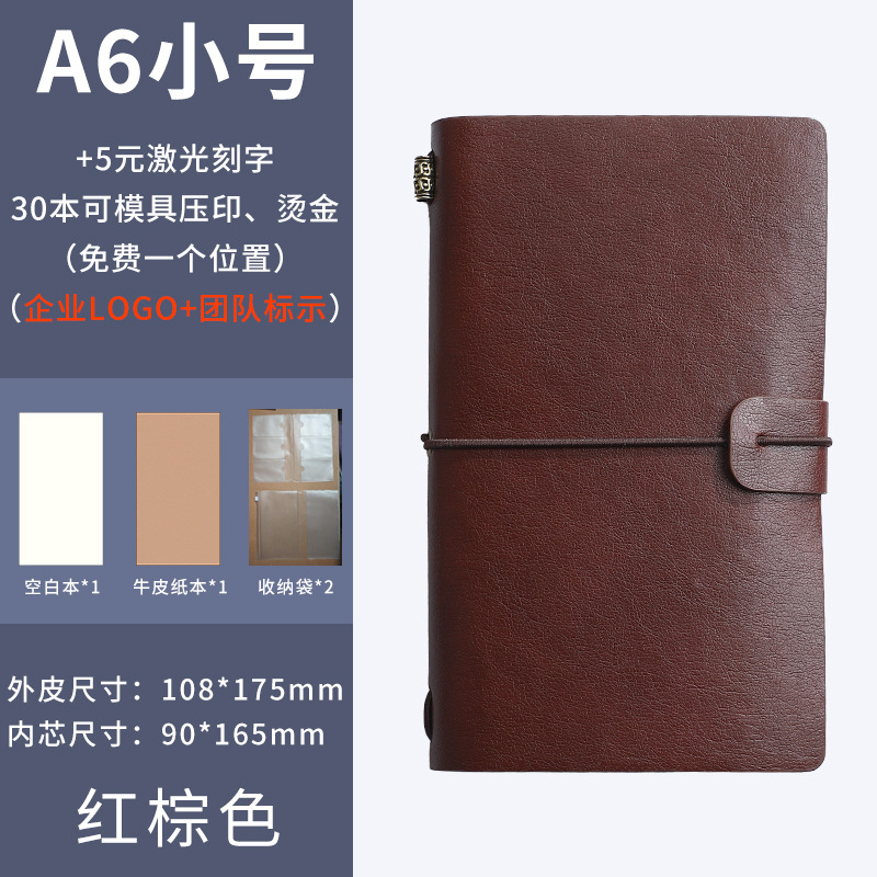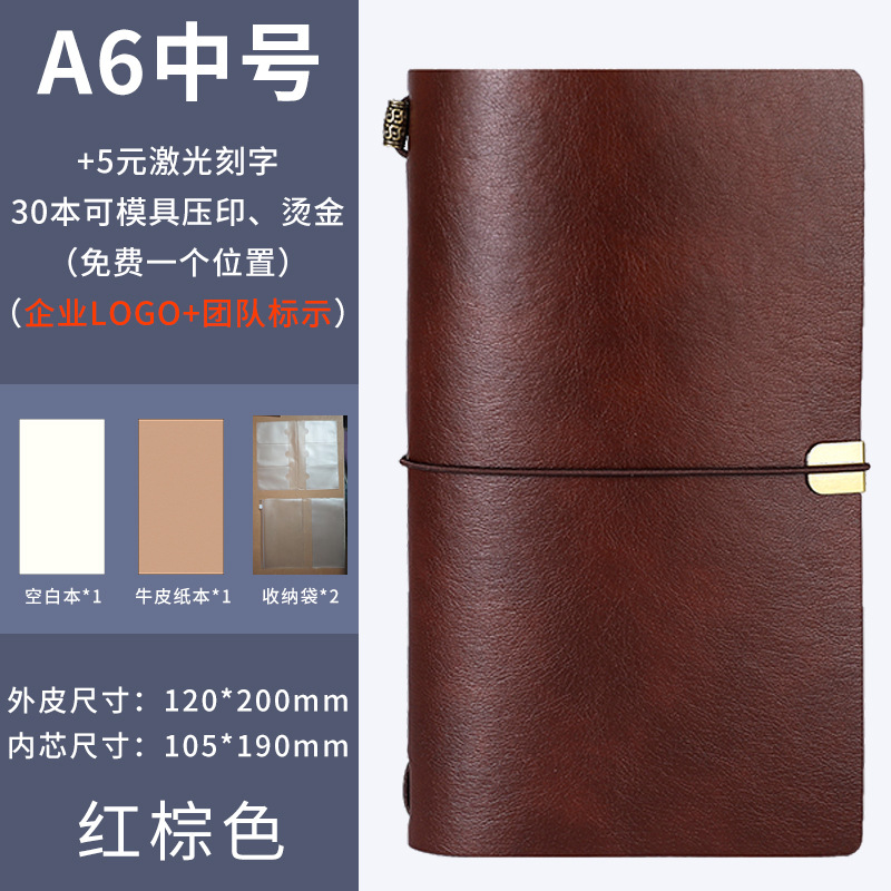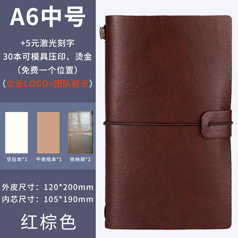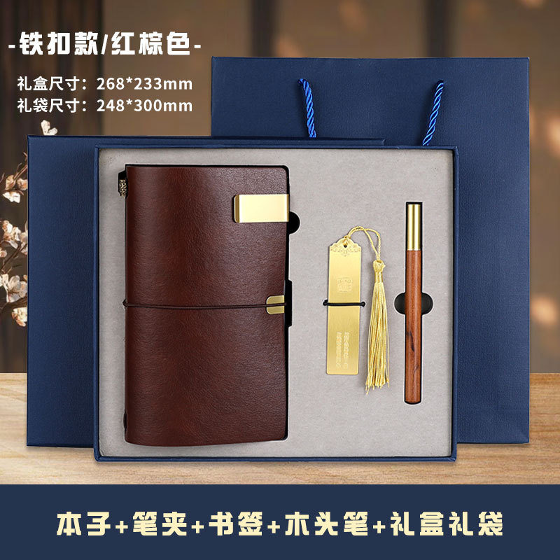 A6 среднего размера [улучшенная жесткая подарочная коробка + подарочный пакет + закладка + ручка из сандалового дерева + зажим для ручки] красно-коричневый - железная пряжка