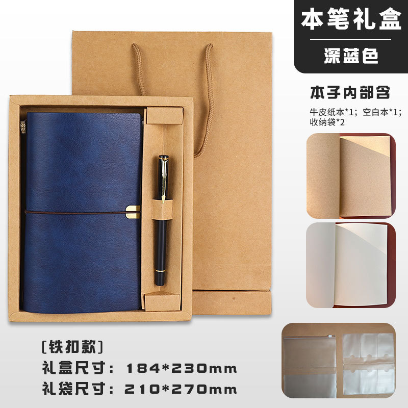 А6 среднего размера [мягкий короб из крафт-бумаги + подарочный пакет + металлическая ручка] темно-синий - железная пряжка