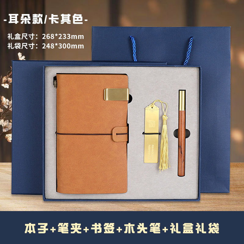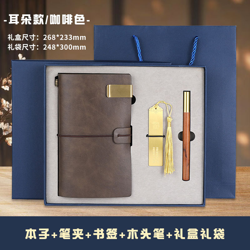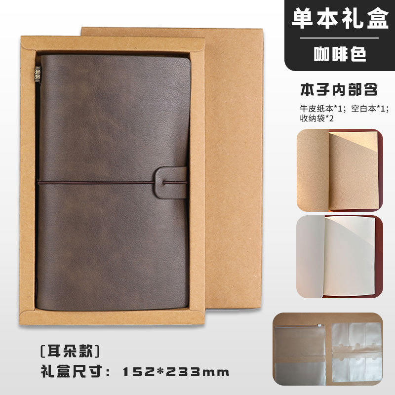 A6 Medium [Усовершенствованная жесткая подарочная коробка + подарочный пакет + закладка + ручка из сандалового дерева + зажим для ручки] Коричневый — стиль ушей
