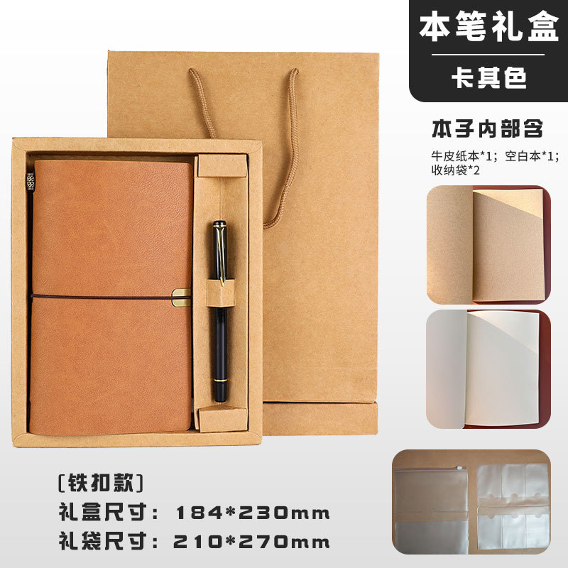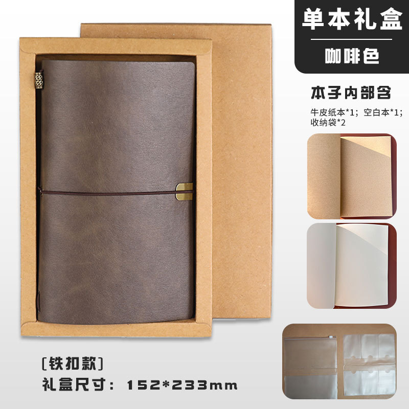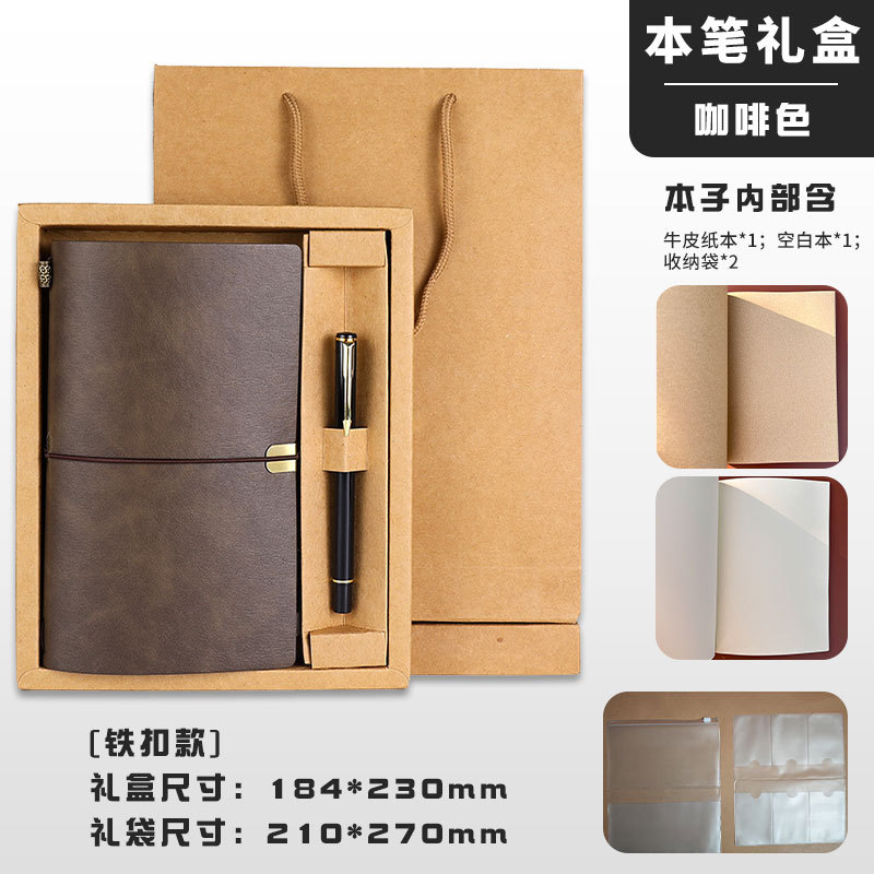 А6 среднего размера [мягкий короб из крафт-бумаги + подарочный пакет + металлическая ручка] коричневый - железная пряжка