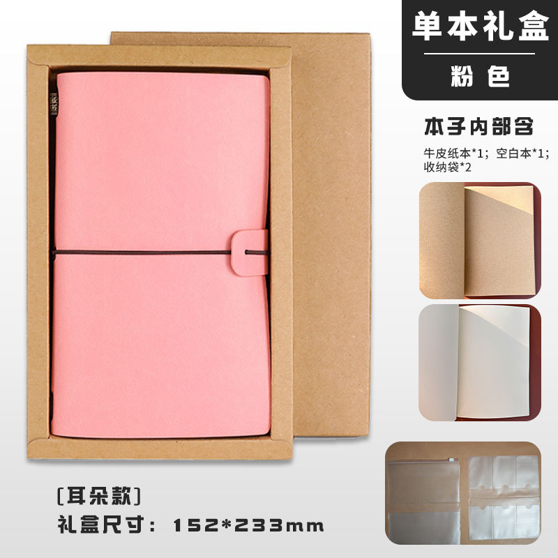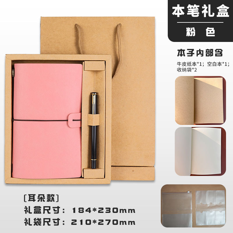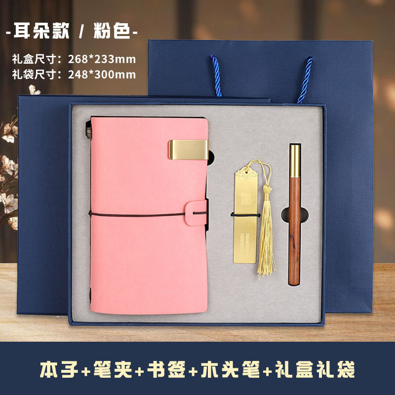 A6 Medium [Усовершенствованная жесткая подарочная коробка + подарочный пакет + закладка + ручка из сандалового дерева + зажим для ручки] Розовый - стиль ушей