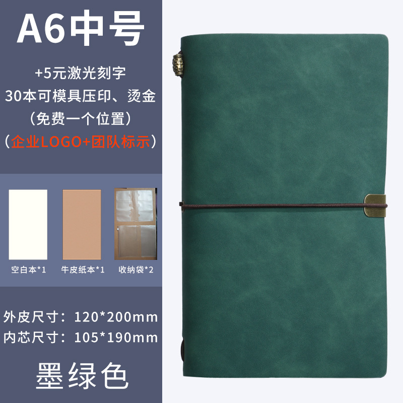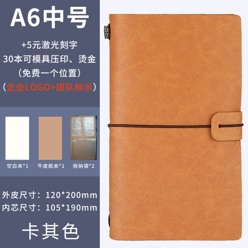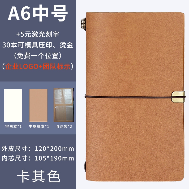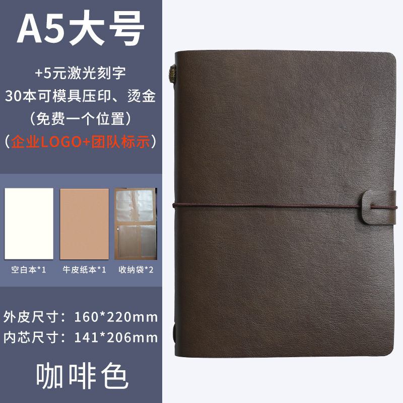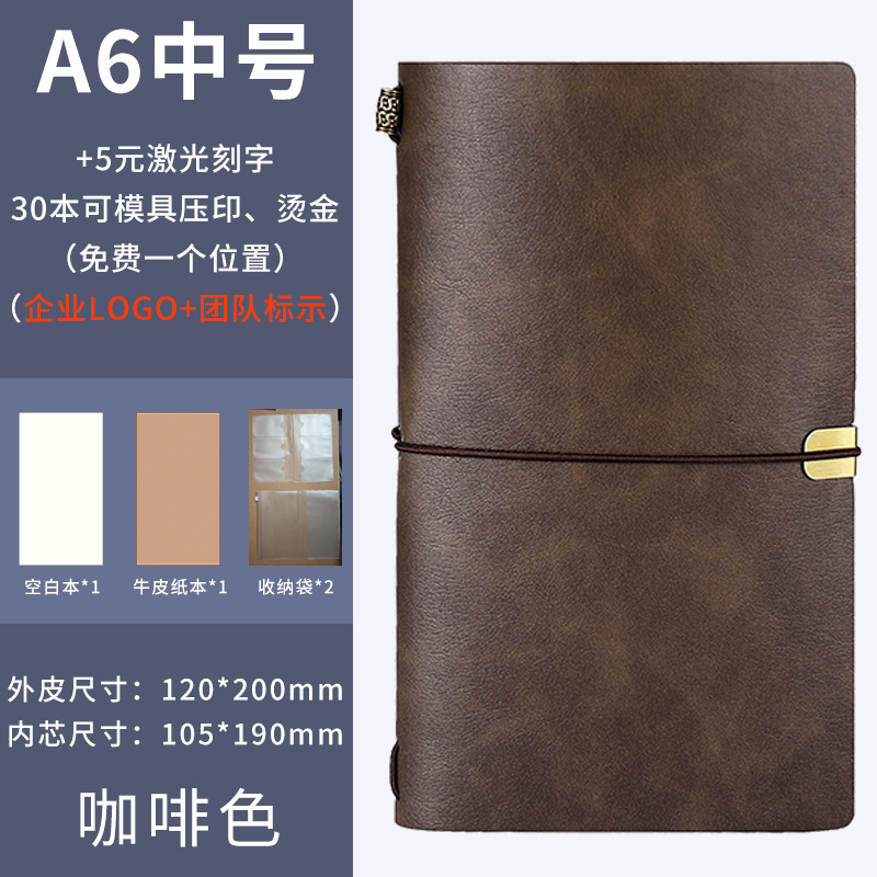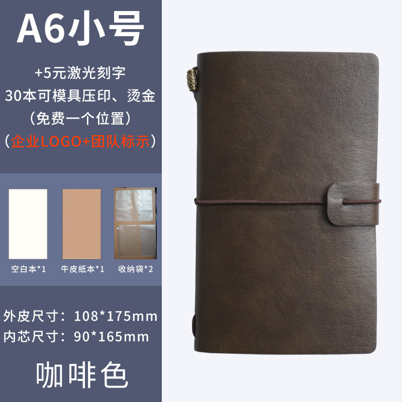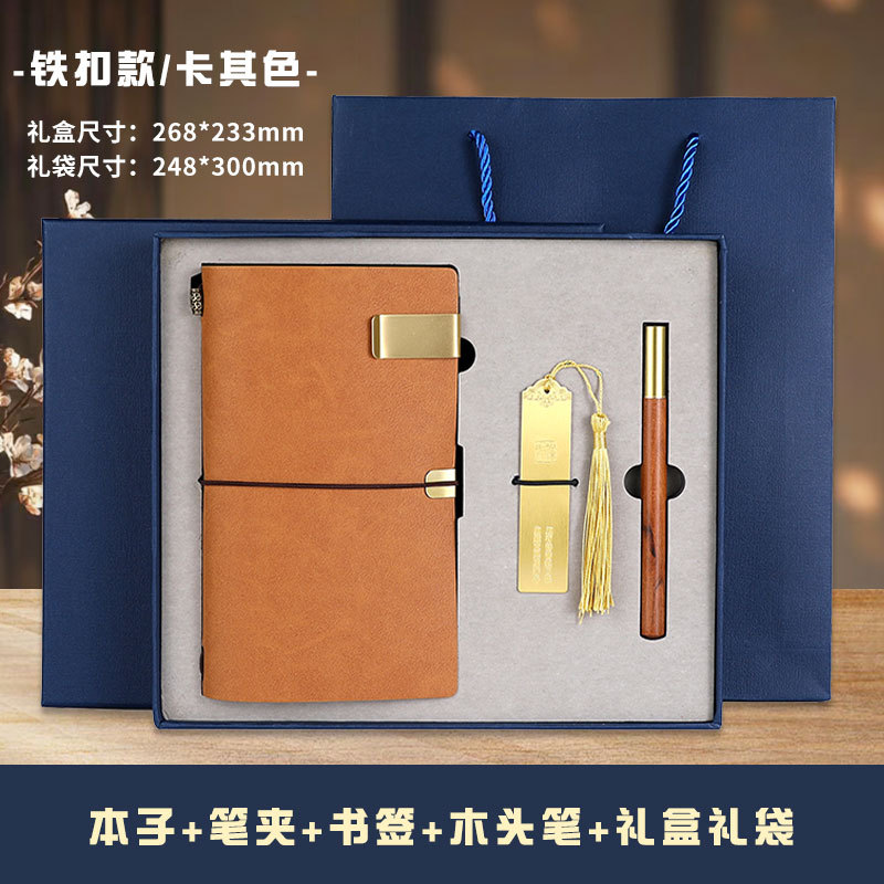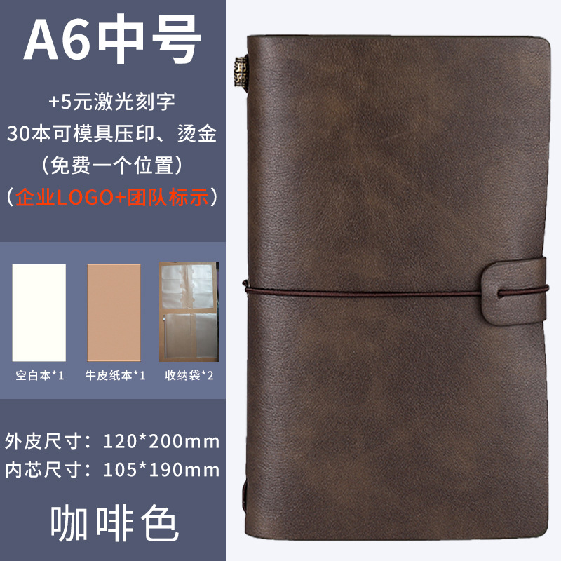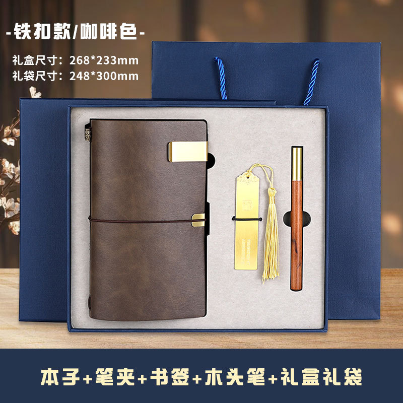 A6 среднего размера [улучшенная жесткая подарочная коробка + подарочный пакет + закладка + ручка из сандалового дерева + зажим для ручки] коричневый - железная пряжка
