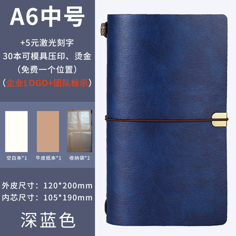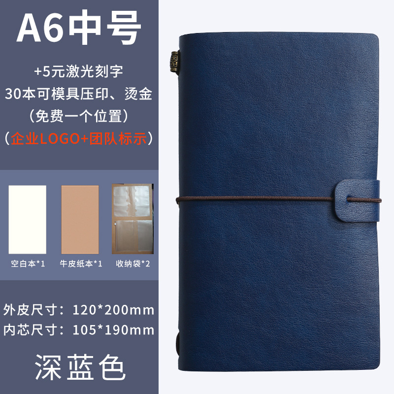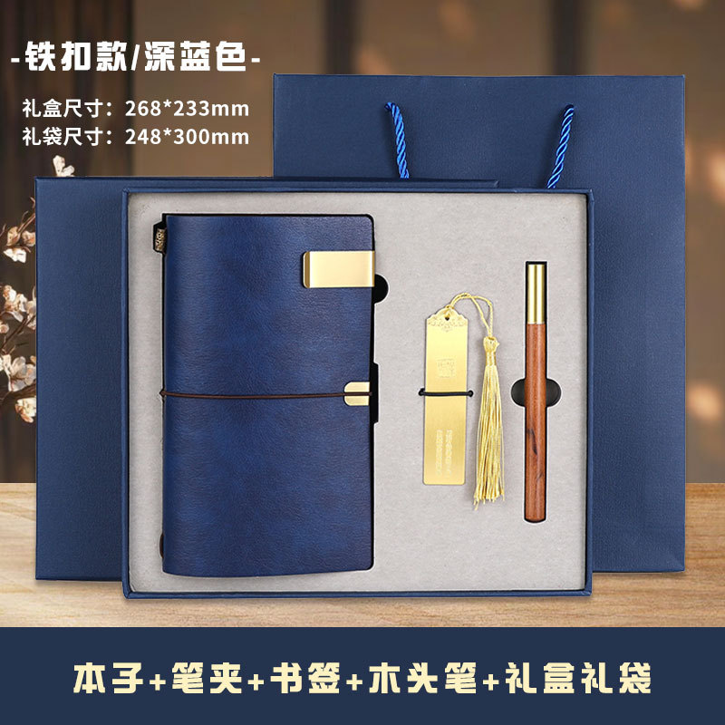 A6 среднего размера [улучшенная жесткая подарочная коробка + подарочный пакет + закладка + ручка из сандалового дерева + зажим для ручки] темно-синий - железная пряжка