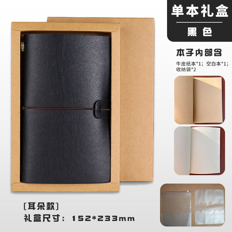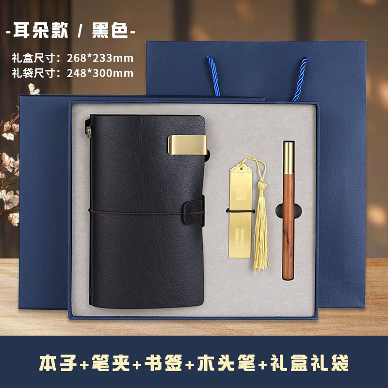 A6 Medium [Усовершенствованная жесткая подарочная коробка + подарочный пакет + закладка + ручка из сандалового дерева + зажим для ручки] Черный - стиль ушей