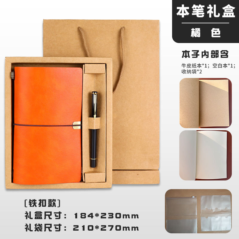А6 среднего размера [мягкий короб из крафт-бумаги + подарочный пакет + металлическая ручка] оранжевый - железная пряжка