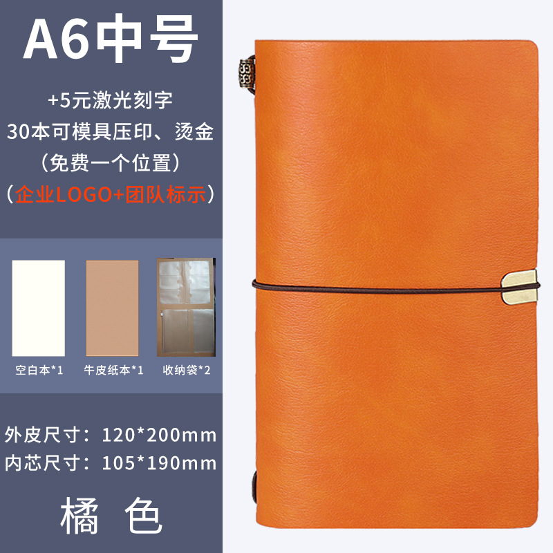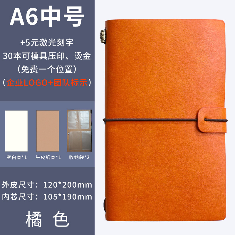 A6 Medium [Усовершенствованная жесткая подарочная коробка + подарочный пакет + закладка + ручка из сандалового дерева + зажим для ручки] Оранжевый - железная пряжка
