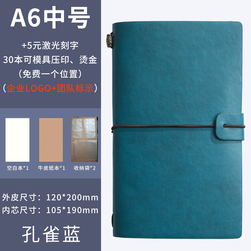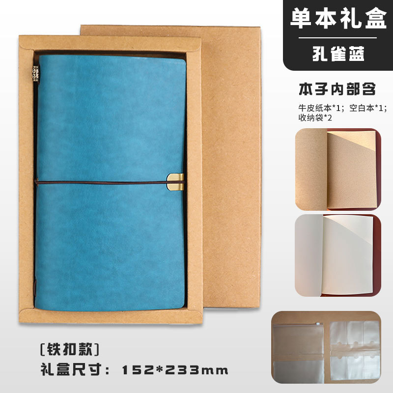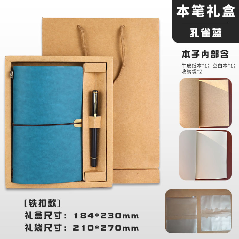 A6 Medium [Мягкая коробка из крафт-бумаги + подарочный пакет + металлическая ручка] Синяя-железная пряжка с павлином
