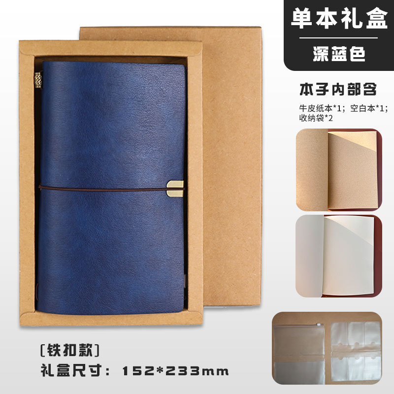 A6 среднего размера [мягкий короб из крафт-бумаги без подарочной сумки] темно-синий - стиль железной пряжки