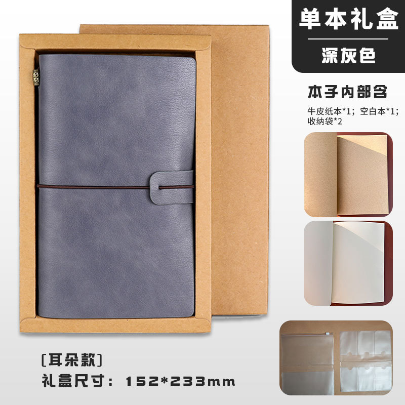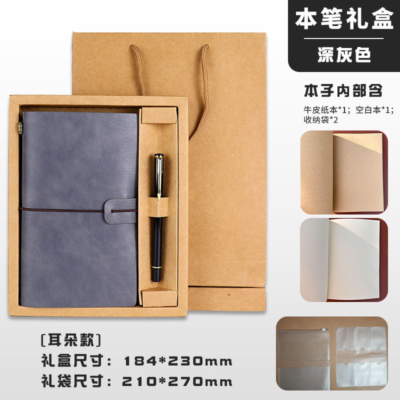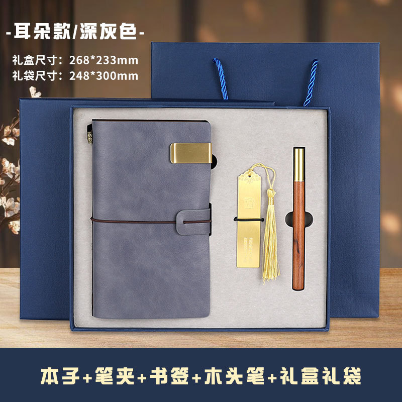 A6 Medium [Улучшенная жесткая подарочная коробка + подарочный пакет + закладка + ручка из сандалового дерева + зажим для ручки] Темно-серый — стиль ушей