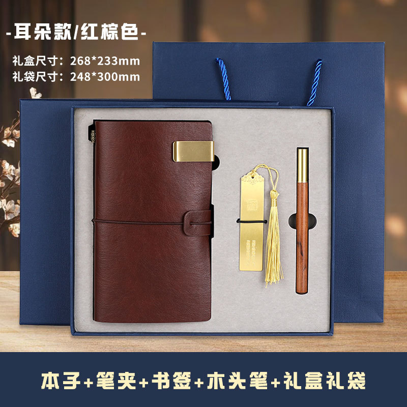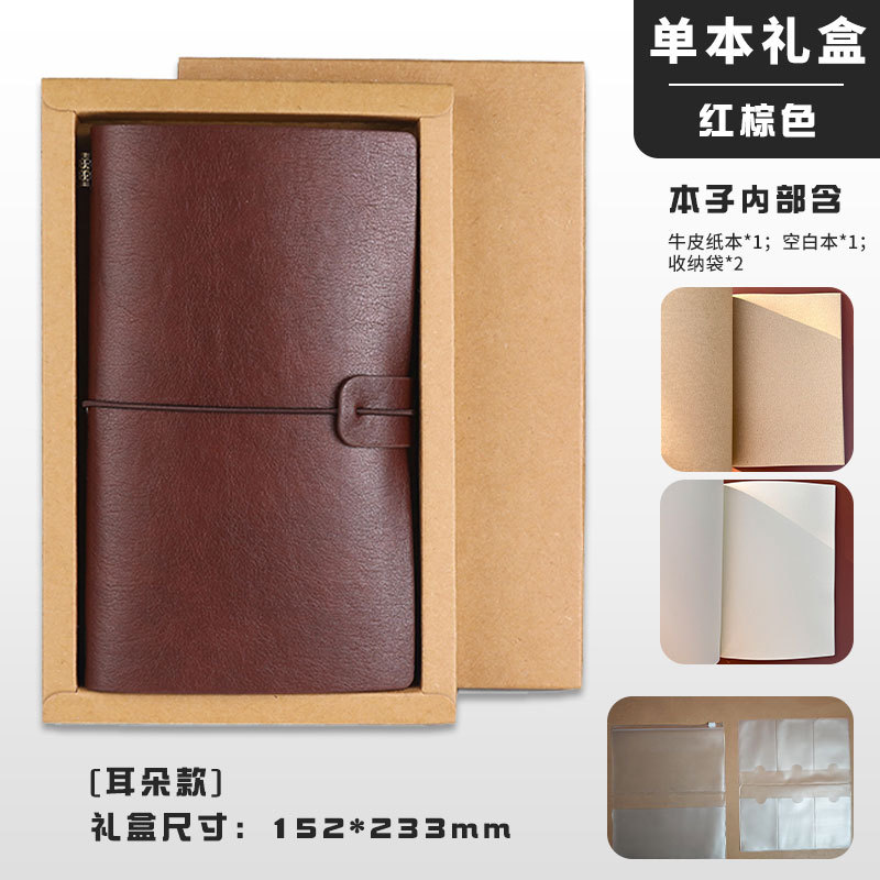 A6 среднего размера [мягкий короб из крафт-бумаги + подарочный пакет + металлическая ручка] красно-коричневый - стиль ушей