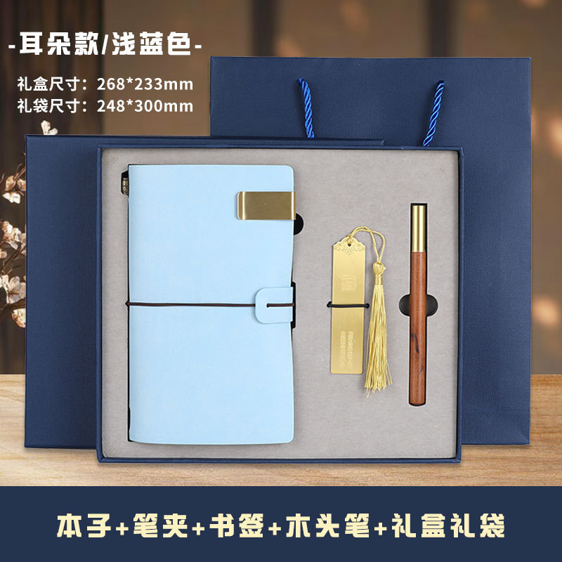 A6 Medium [Усовершенствованная жесткая подарочная коробка + подарочный пакет + закладка + ручка из сандалового дерева + зажим для ручки] Голубой - стиль ушей