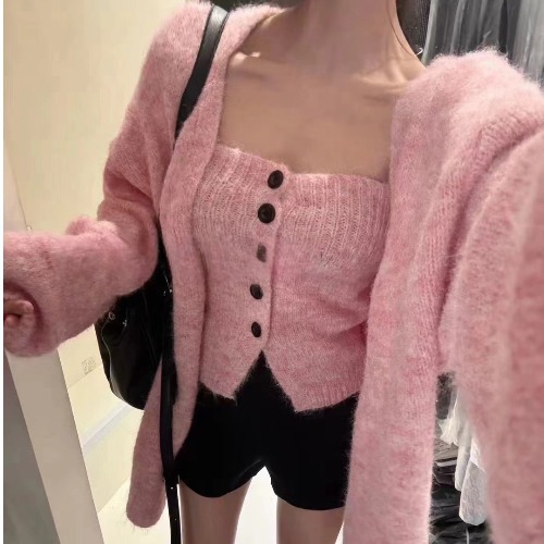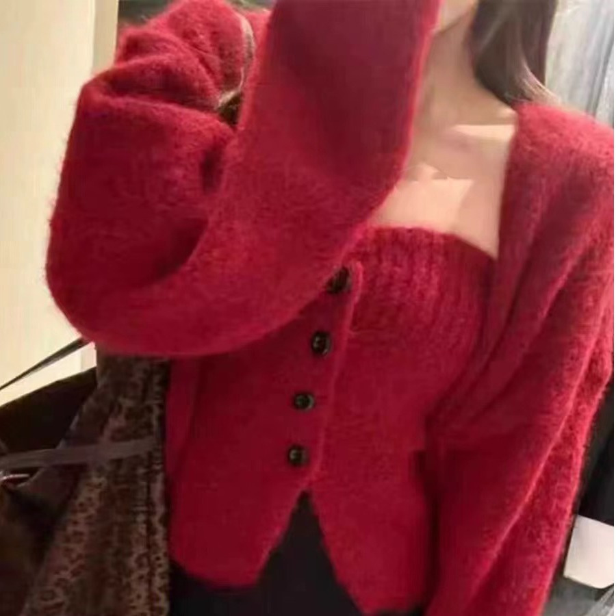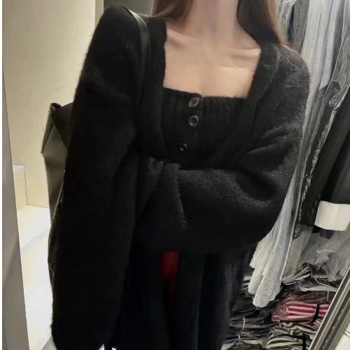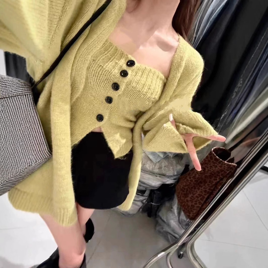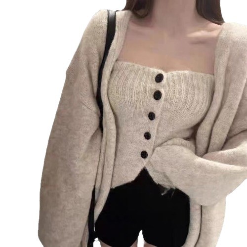 Корейский костюм-двойка с толстой иглой, однобортная грудь + свободный свитер в ленивом стиле, куртка, кардиган из альпаки, топ
