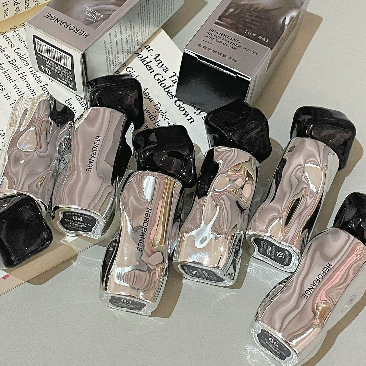 Главная страница > HERORANGE ~ Сверкающие серебряные перья бархатный туман для губ глазурь матовый бархат