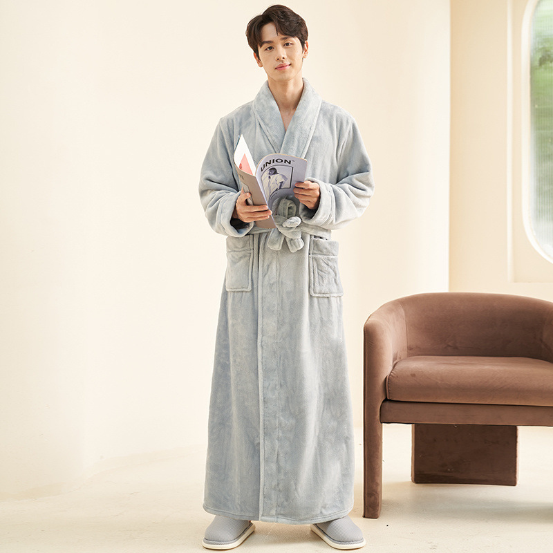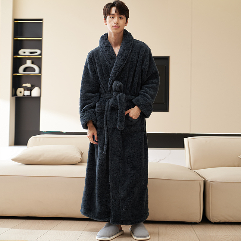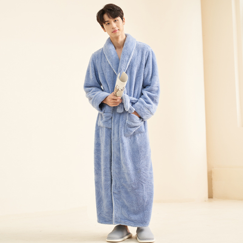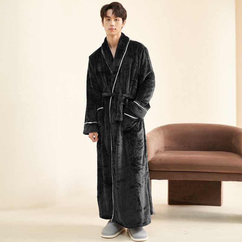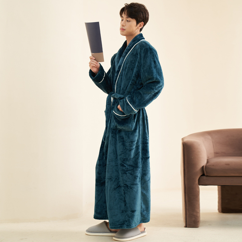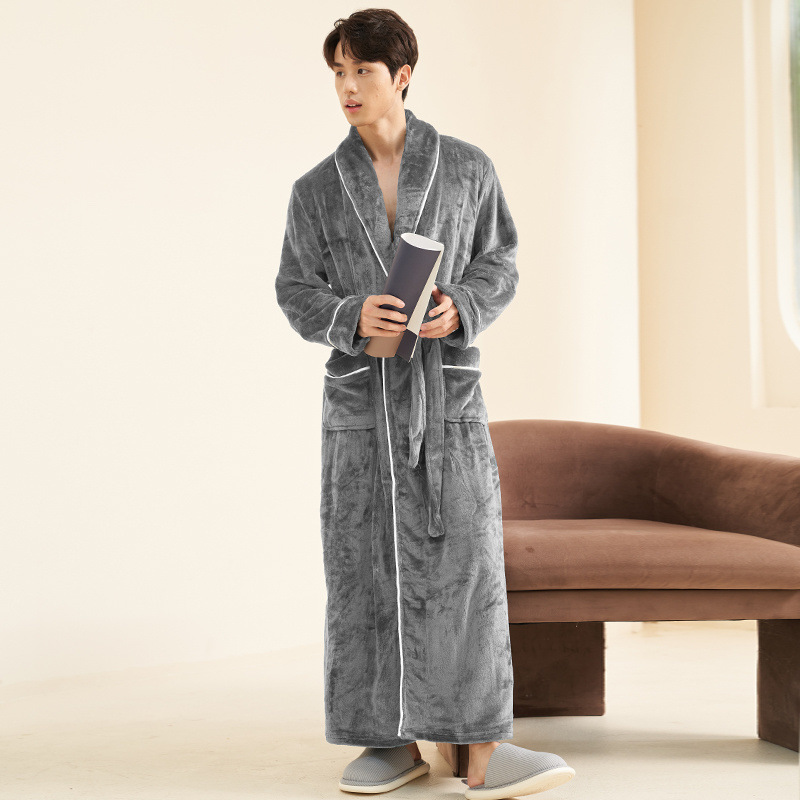 Пижамы мужские утолщенные бархатные коралловые бархатные осенне-зимние удлиненные халаты мужские зимние фланелевые халаты большого размера