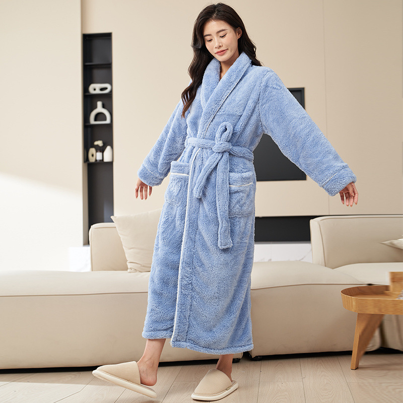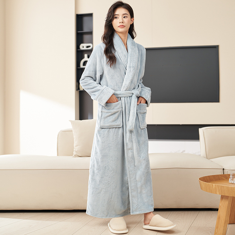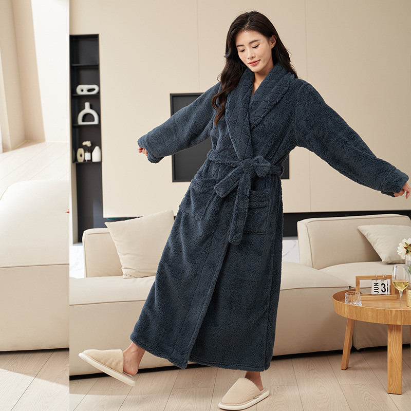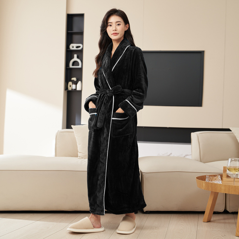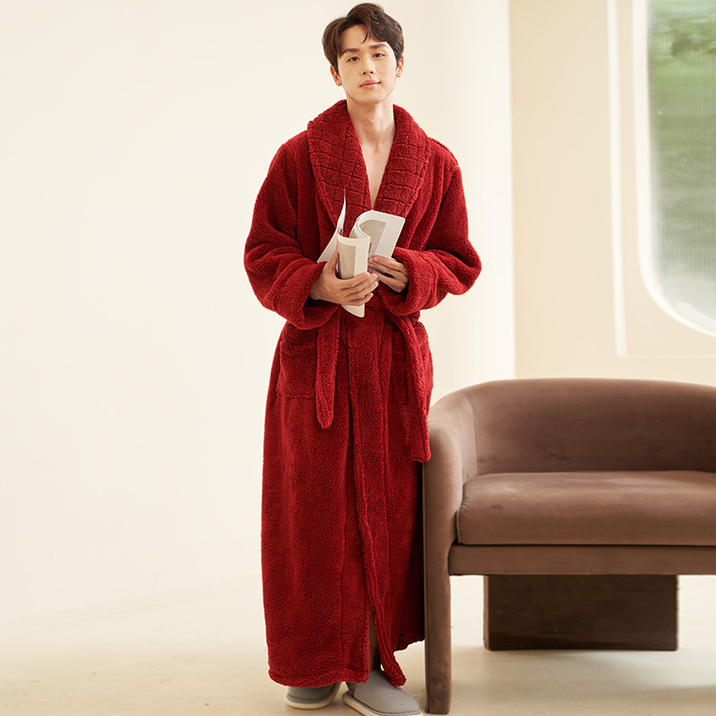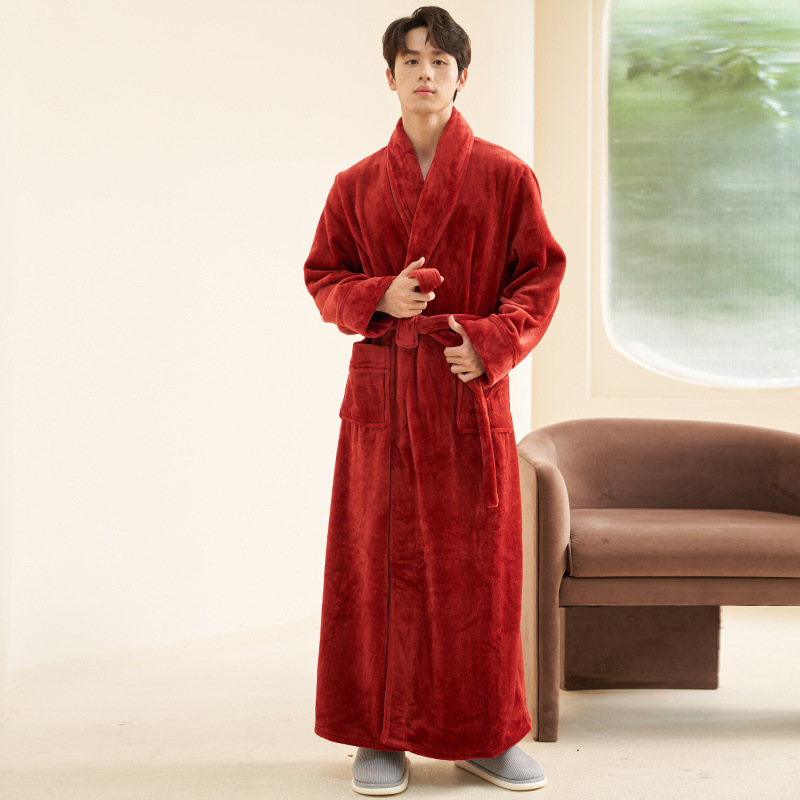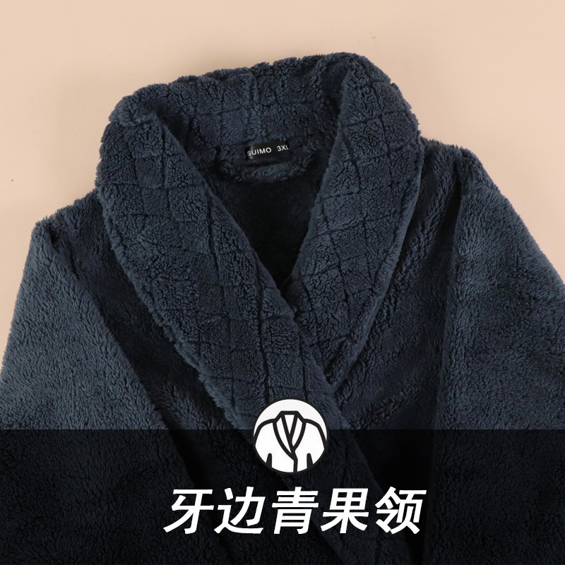 Пижамы мужские утолщенные бархатные коралловые бархатные осенне-зимние удлиненные халаты мужские зимние фланелевые халаты большого размера